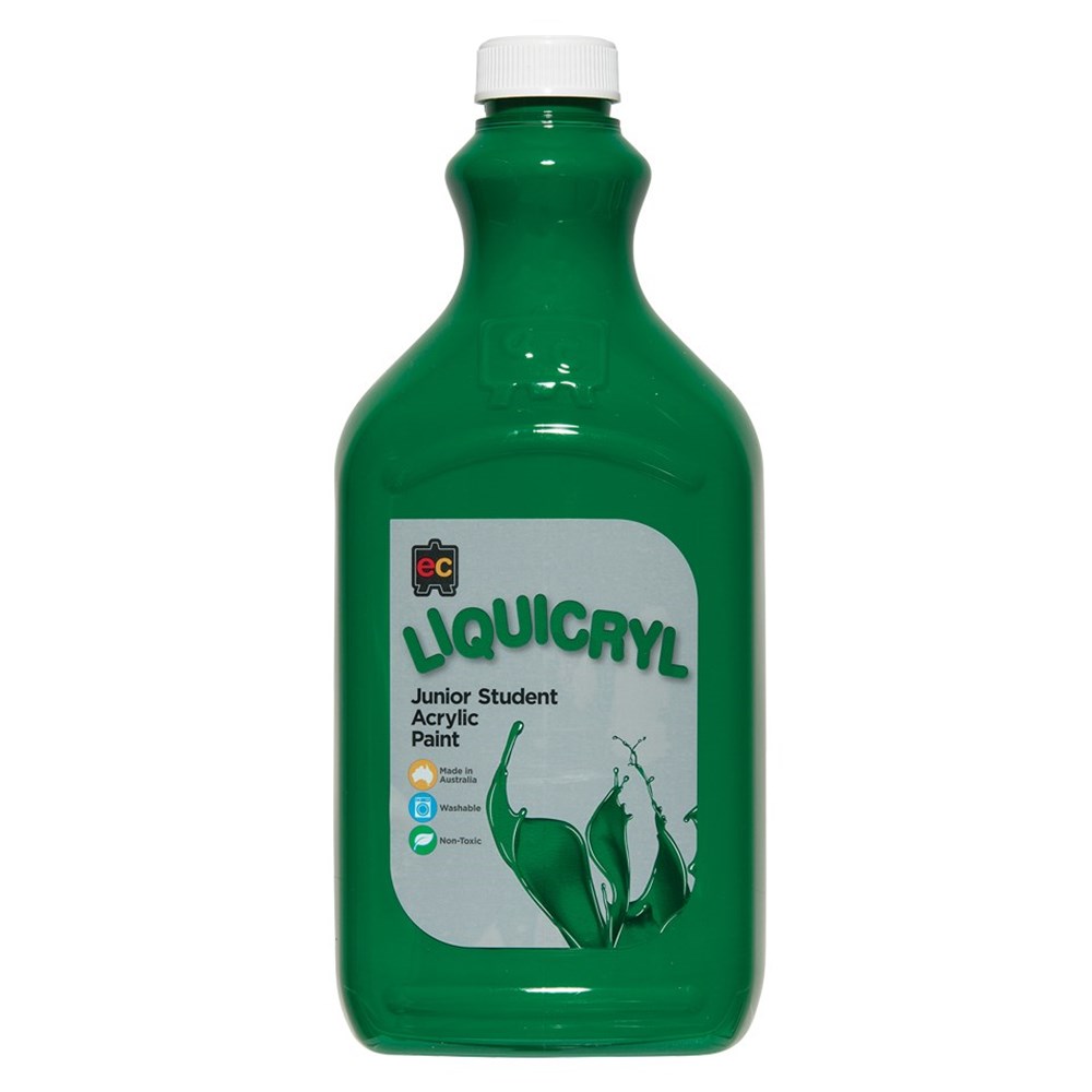Quality green acrylic paint ideal for a variety of craft activities. Thick consistency in strong pigmented colour. Dries quickly giving an even matt finish. Australian made. Water-based. Washable. Non-toxic.