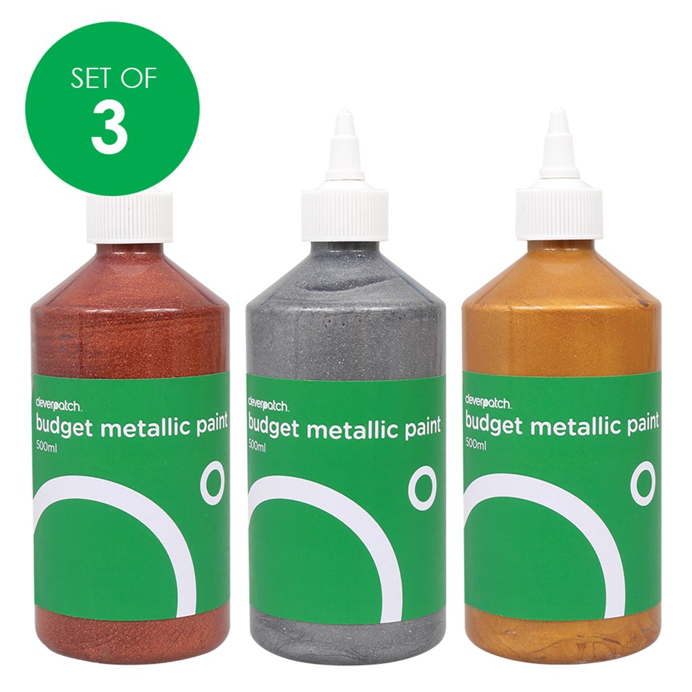 Each metallic paint comes in a convenient, easy-to-use 500ml bottle. Set of 3 includes one of each colour (copper, silver and gold).