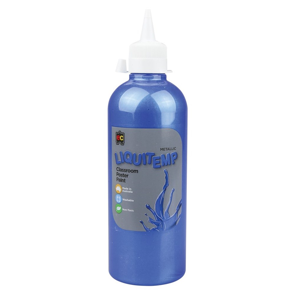 Water-based, Australian made blue metallic paint for general purpose use. Non-toxic. Washable.