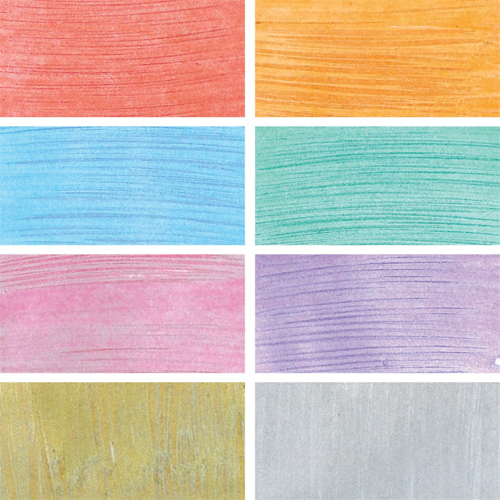 Pack includes 8 markers in assorted metallic colours (red, bronze, green, blue, pink, violet, gold and silver). Each marker features a bullet tip with 1.8 - 2.5mm stroke.