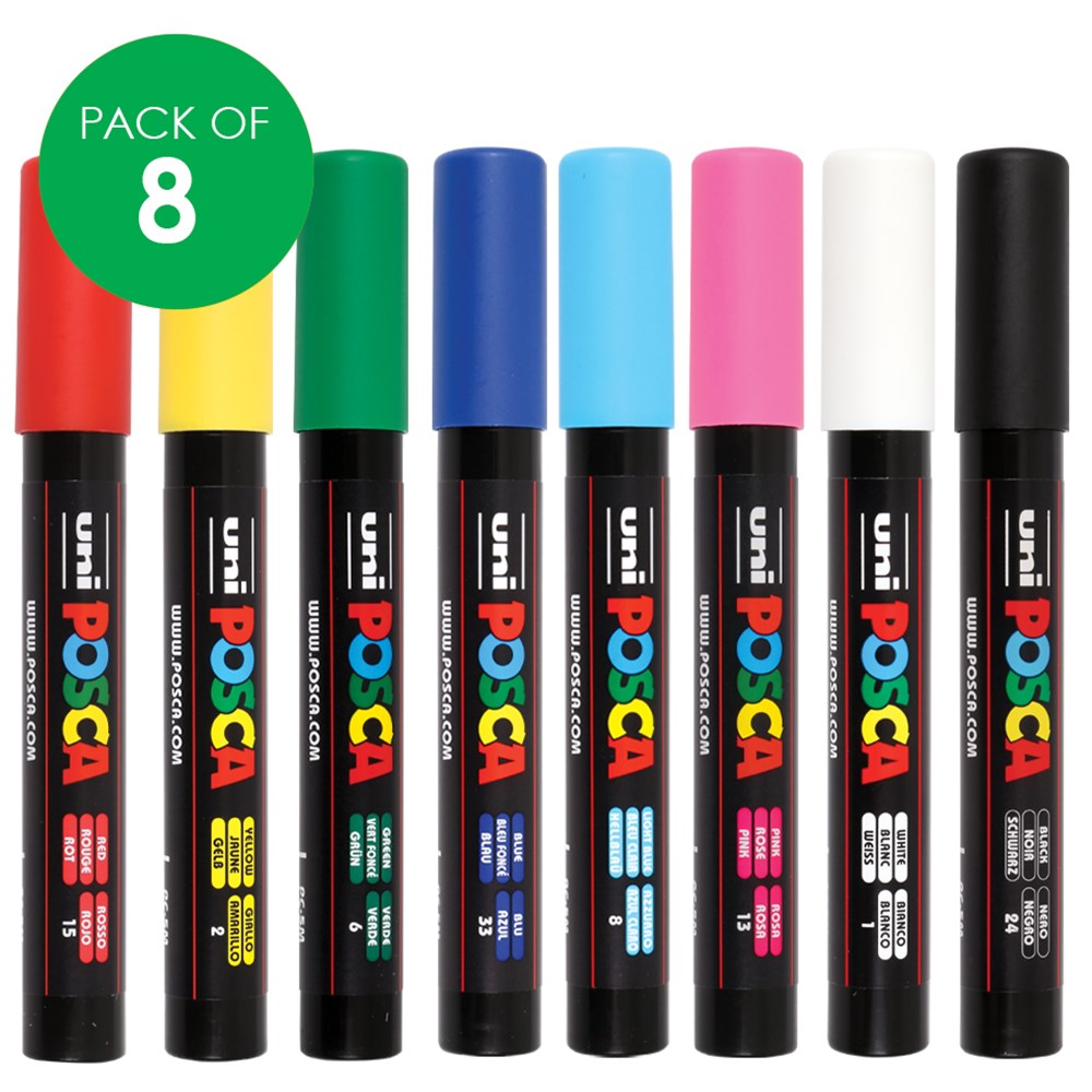 Water-based paint markers ideal for most surfaces! Provides great coverage and dries quickly. A great mess free way to paint! POSCA paint markers are permanent on porous surfaces, can be removed from glass and do not bleed through paper. Suitable for use on most surfaces including paper, wood, ceramic and terracotta, porcelain, glass, papier mache, air dry clay, rocks, fabric, metal and plastic. Odourless.