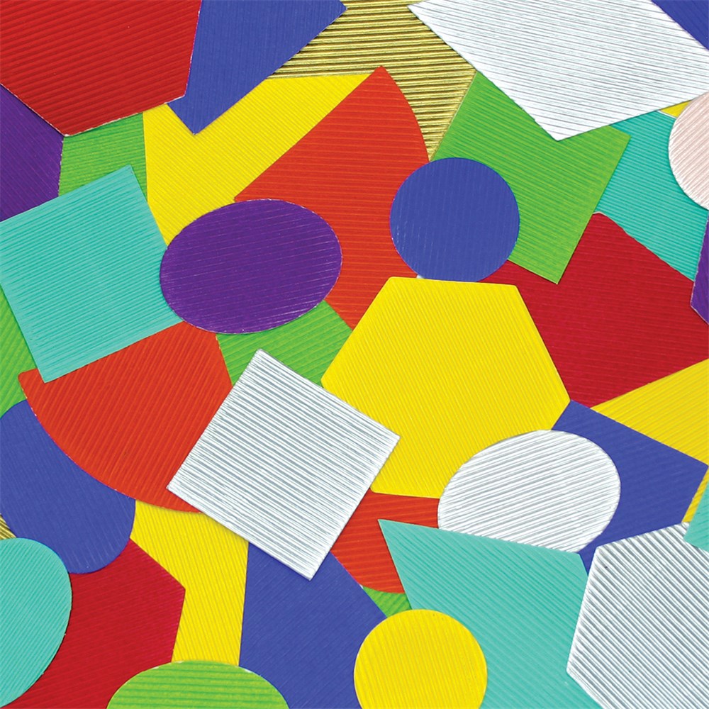 Pre-cut Corrugated Shapes in assorted colours. Hexagon measures 8.5 x 7.5cm. Colours and designs may vary.