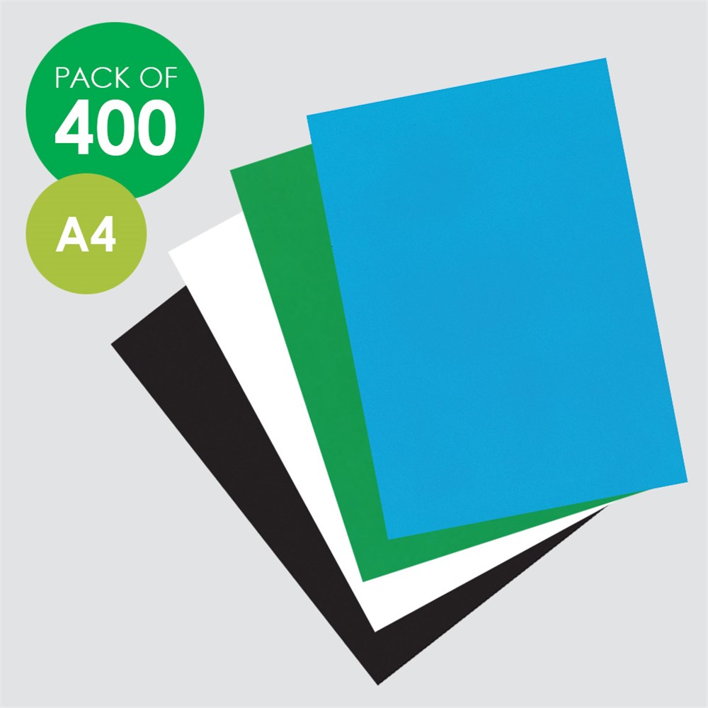Double-sided A4 coloured cover paper provided in a set of 4 Torres Strait Islands Colours. 100 sheets per colour. 125gsm. Colours may vary.