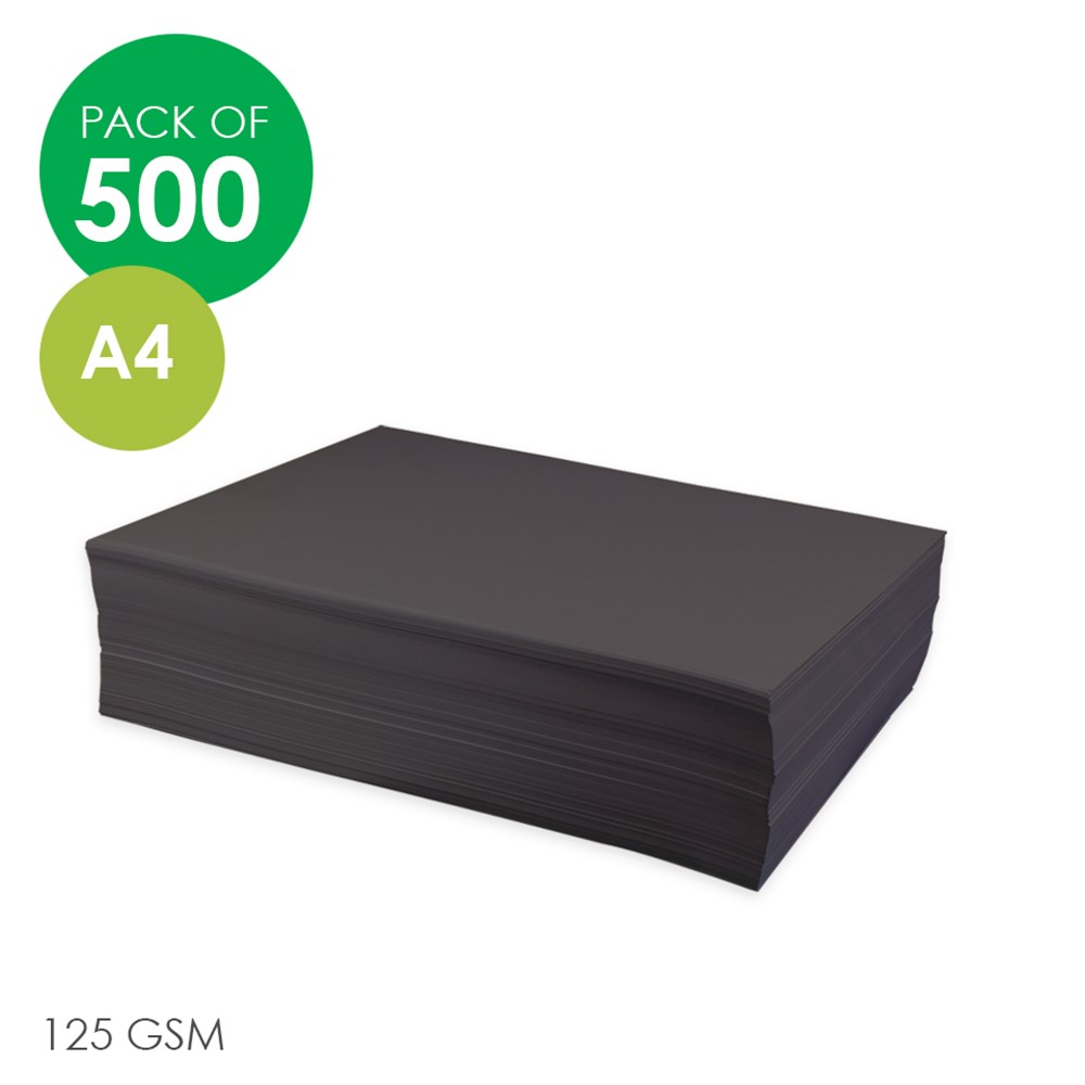 Double-sided A4 black cover paper. 125gsm. 100% sustainably sourced.