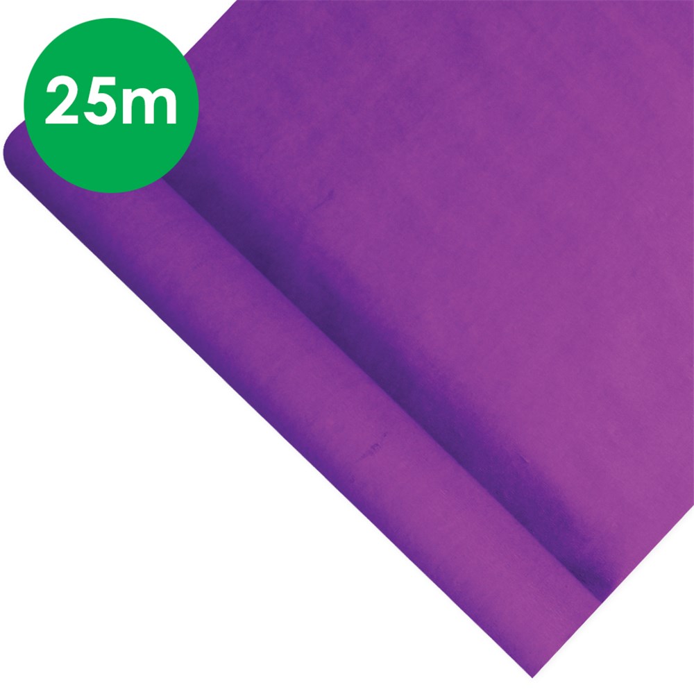 Purple crepe paper roll measuring 50cm wide and 25m long. 18gsm. Colour may vary.