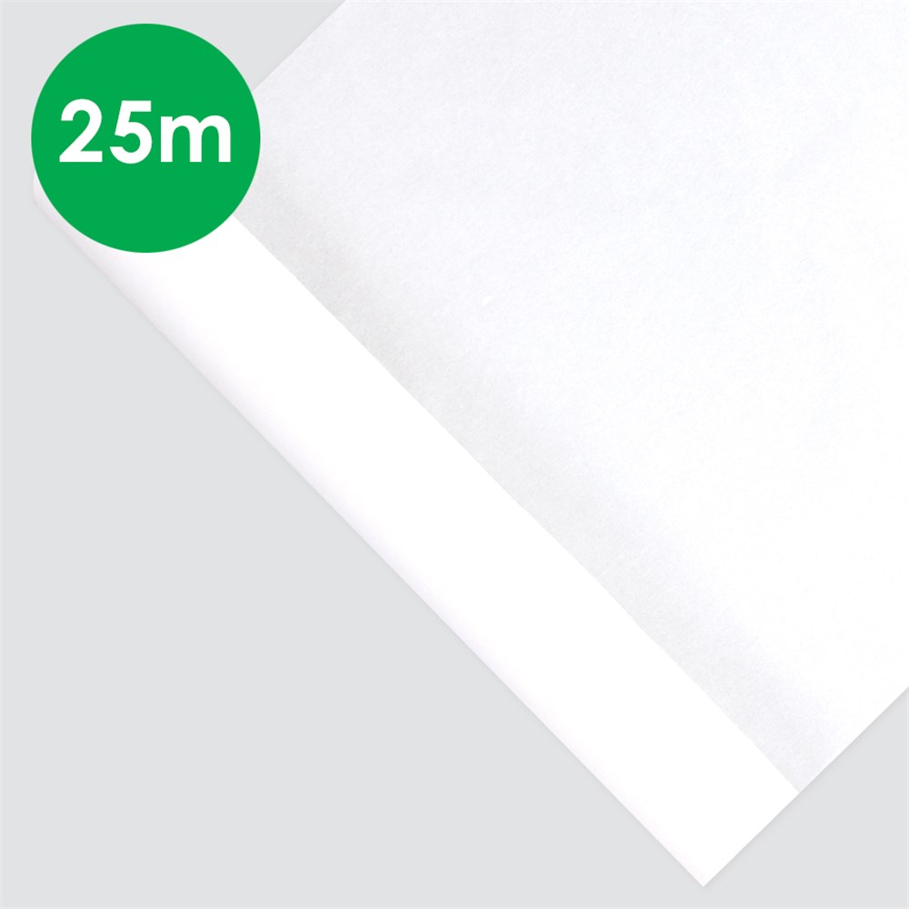 White crepe paper roll measuring 50cm wide and 25m long. 18gsm. Colour may vary.