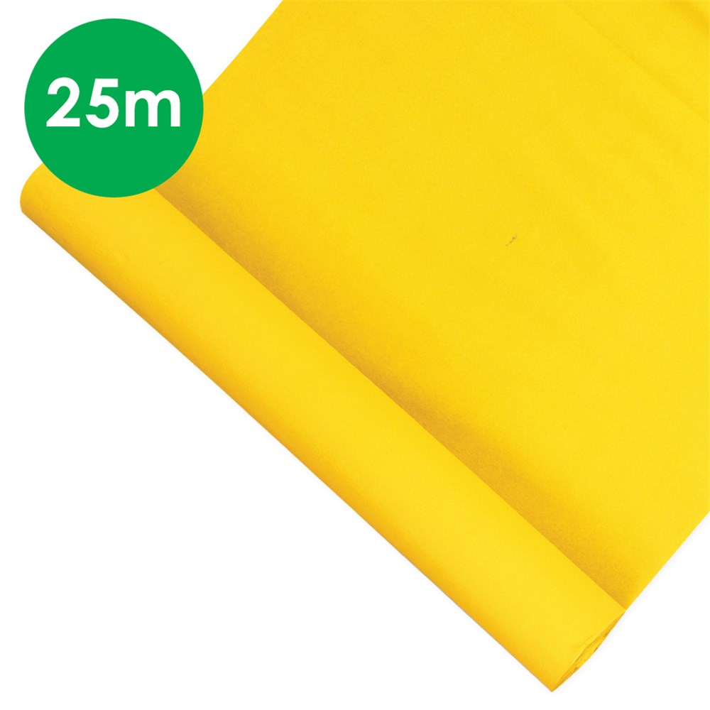 Yellow crepe paper roll measuring 50cm wide and 25m long. 18gsm. Colour may vary.
