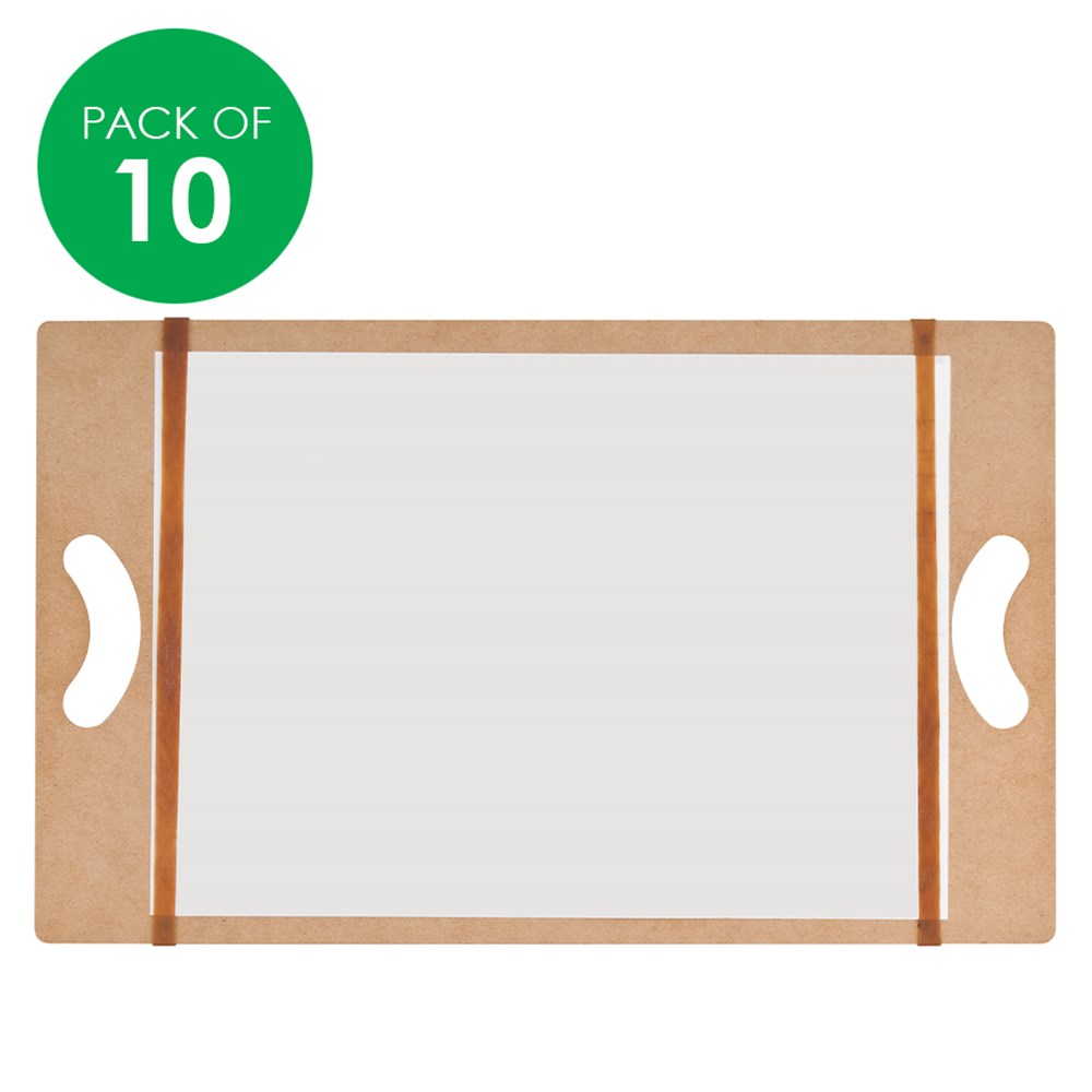 Each lightweight board has two large elastic bands on each side to secure paper in place and can fit up to A3 sized paper. The board includes two holes on each end to make holding and carrying easier.