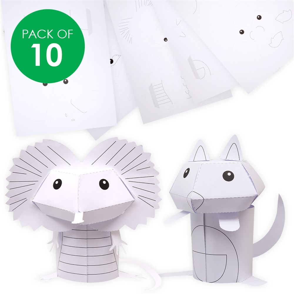 5 assorted pre-printed designs - just colour/decorate and assemble!. Supplied in sheet form and flat-packed for easy self-assembly with instructions included.