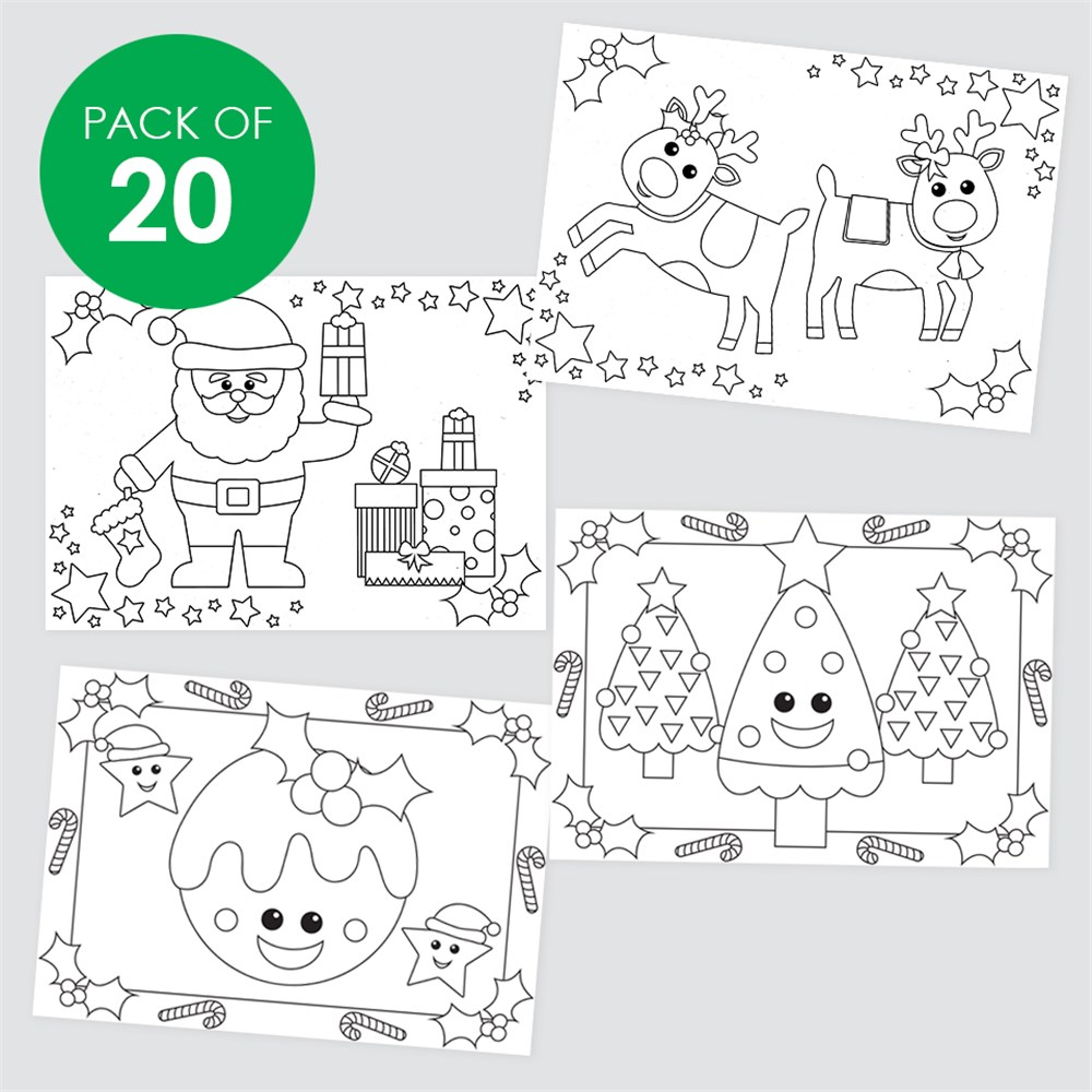 White cardboard Christmas placemats in 4 pre-printed assorted designs. Plain for you to create. 210gsm board. A3 size. To protect your designs, laminate your placemat using our A3 CleverPatch laminating sheets (sold separately).