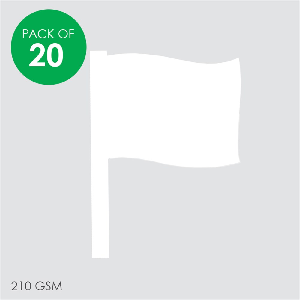 White Cardboard Flags come plain for you to create. Australian made. Pack of 20 flags. Each cardboard flag is made from 210gsm board and measures 17.5 x 24cm.