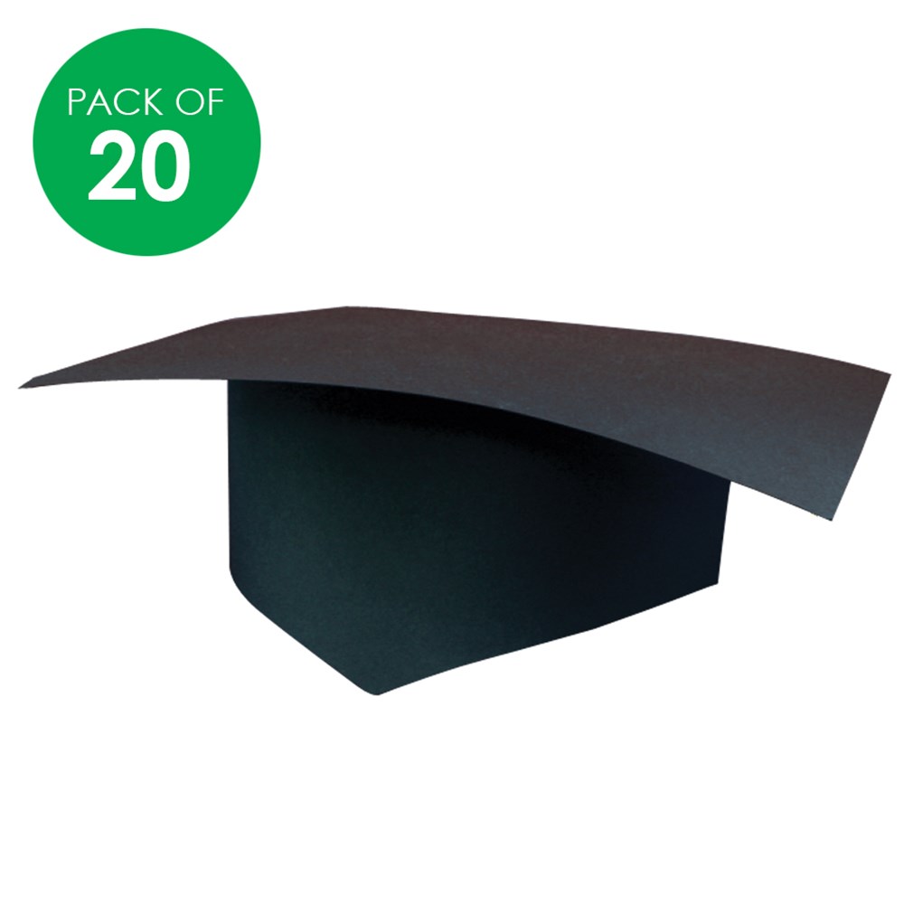 Supplied plain for you to create and flat-packed for easy self-assembly. Each hat is made from black 300gsm board and measures 25 x 25 x 10cm when assembled. Adjustable to fit most, with a minimum circumference of 45.5cm and a maximum circumference of 48cm using the slits provided.