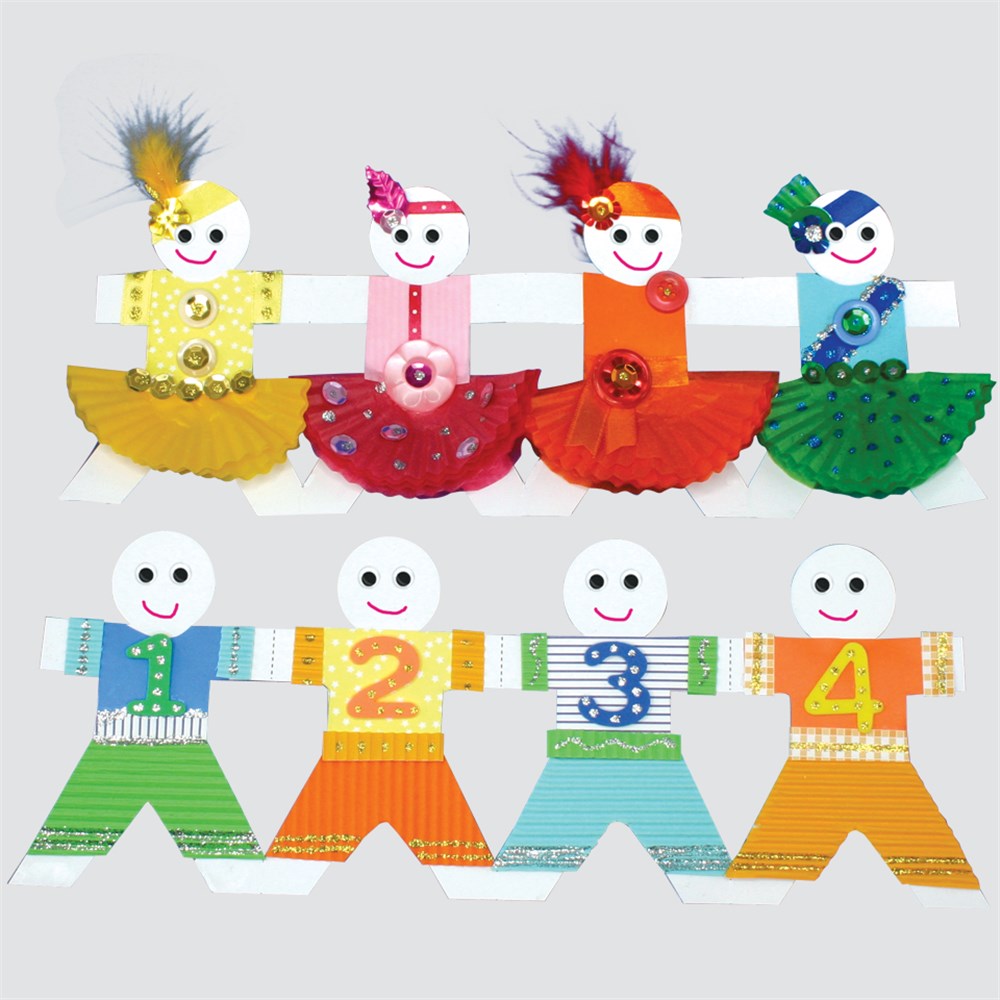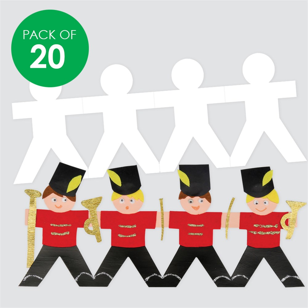 White Cardboard Paper Chains come white for you to create. Each chain includes 4 people shapes and measures 29 x 11cm when extended. This pack includes 20 chains made from 210gsm board. Australian made.