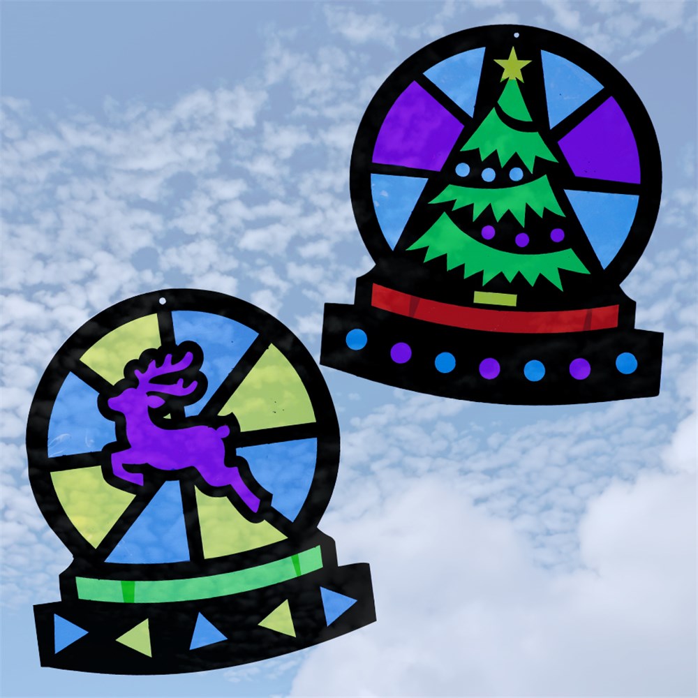Add a little more colour to your Christmas with a stained glass snow globe display! Perfect to hang or stick onto a window.