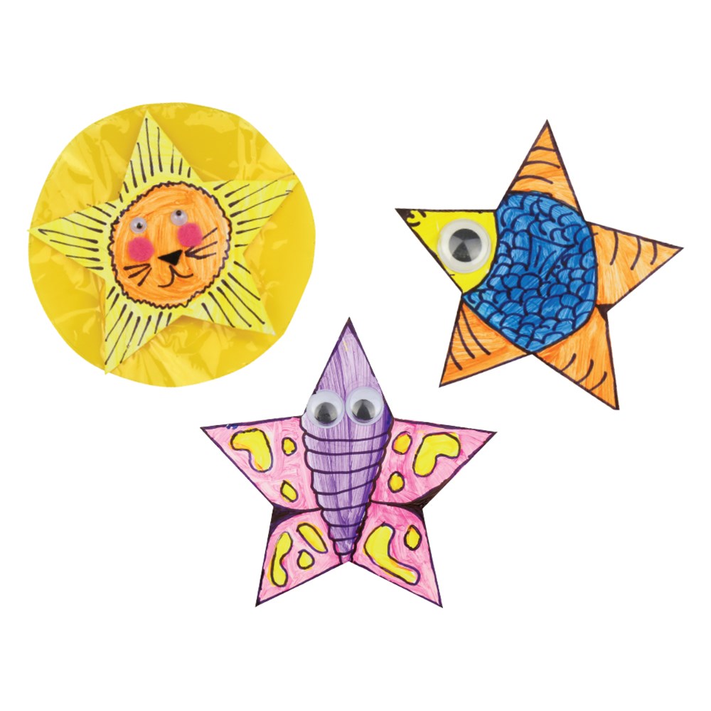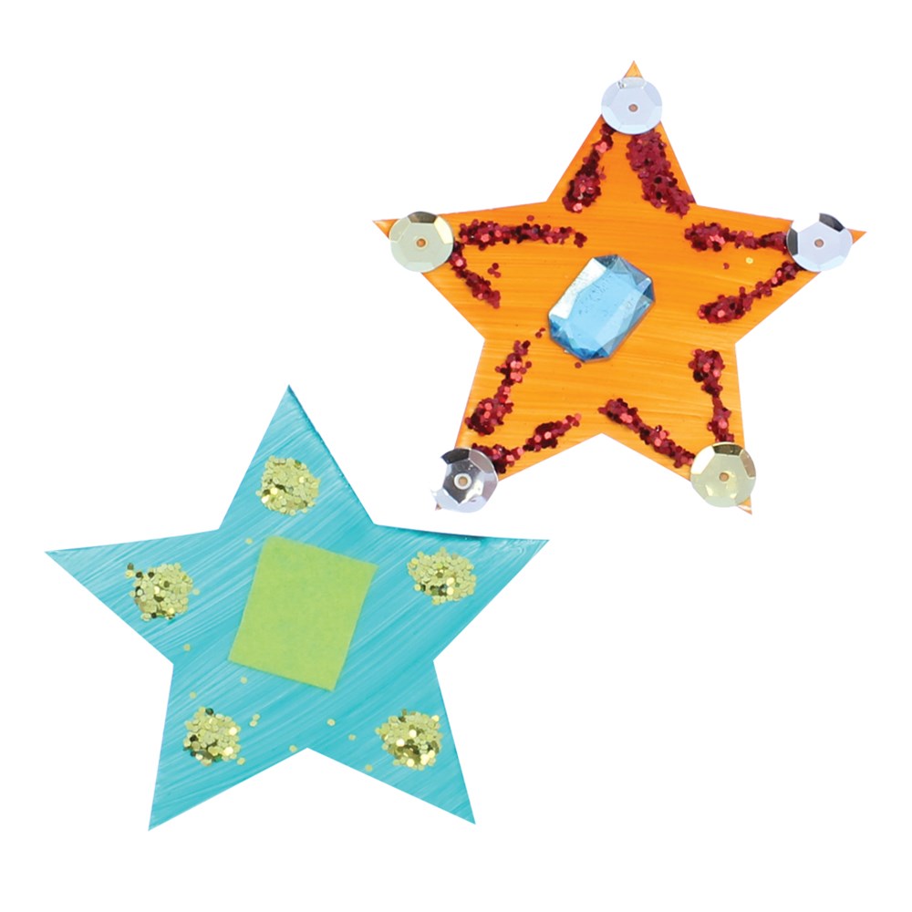 White cardboard stars supplied plain for you to create. Each star measures approximately 7 x 7cm. 210gsm board.