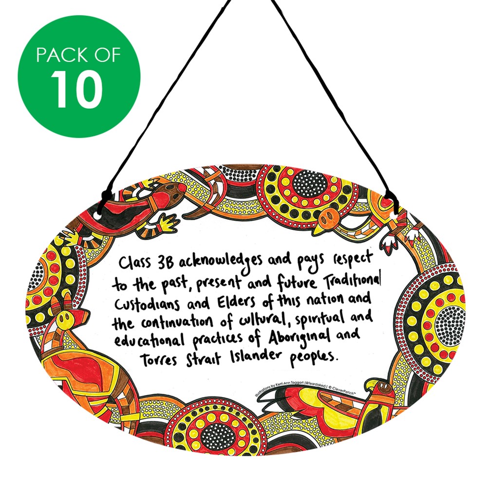 Centre of plaque is plain for you to create or write a message. Each plaque measures 28.6 x 19cm and includes holes for hanging. Made with 1mm thick board.