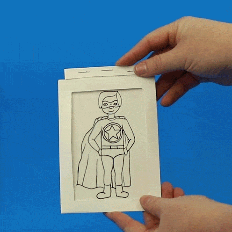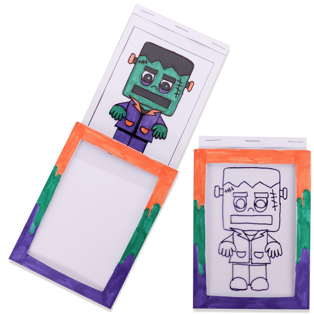 Watch your colourful artwork appear before your eyes like magic! To create this effect, construct the frame, add your designs then slide the insert in and out to change between a black outline and full colour picture.