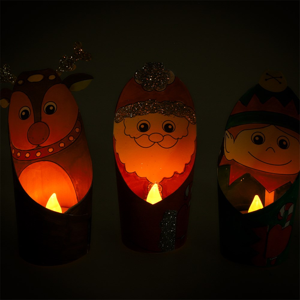 Each pack includes 3 assorted character designs - Reindeer, Elf and Santa. Supplied flat-packed for easy self-assembly and plain for you to create. Reindeer measures approximately 5.5cm in diameter and 12.5cm high when assembled. 120gsm paper.
