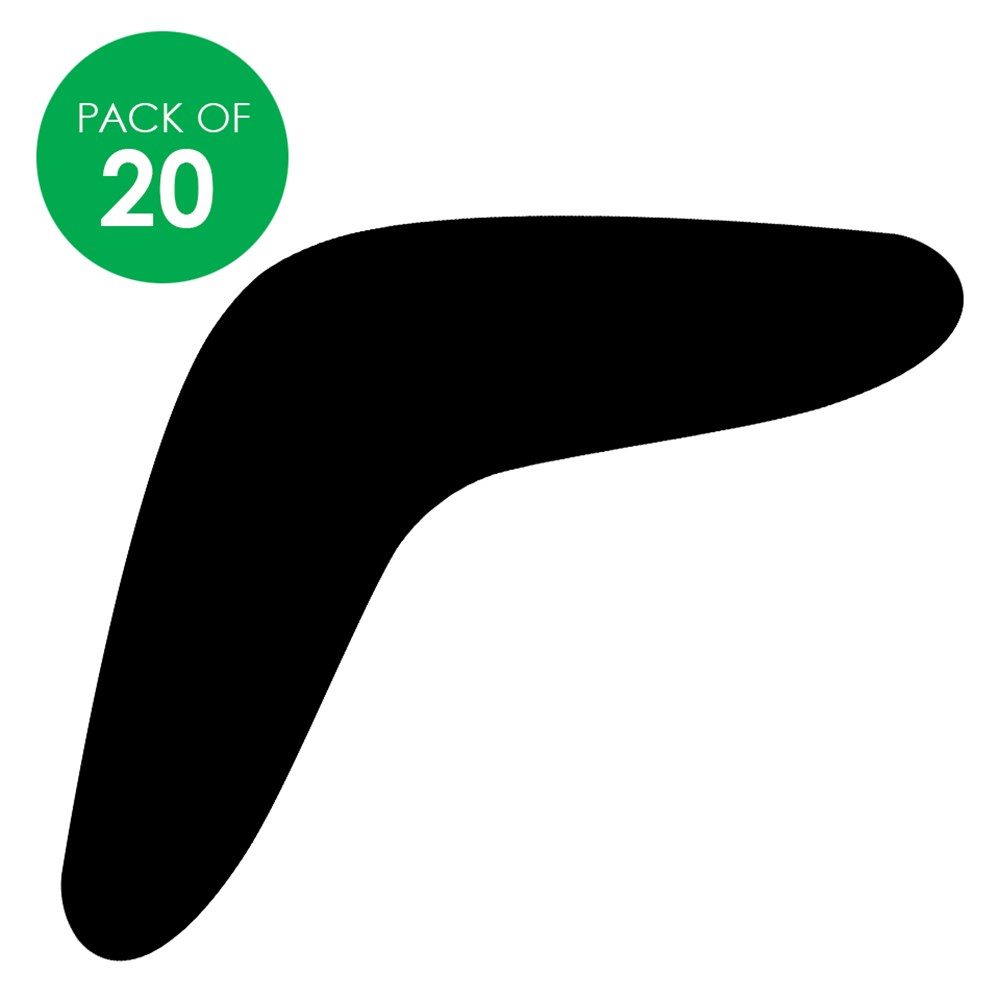 Each boomerang measures 28 x 12cm. 250gsm board.