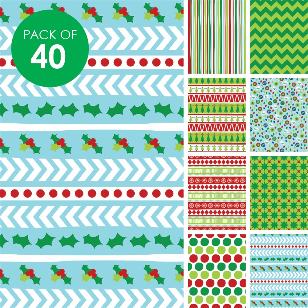 Single-sided craft paper in 8 assorted traditional Christmas designs.