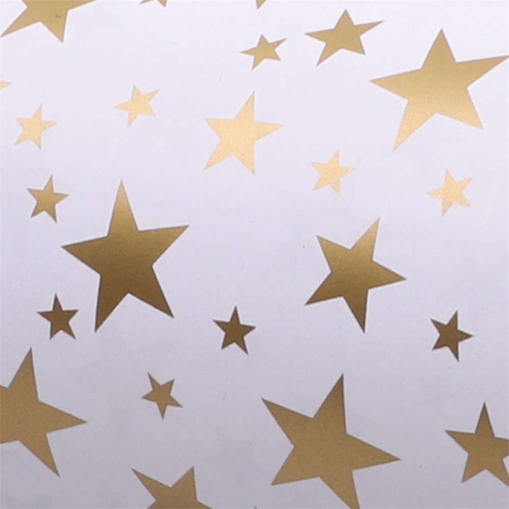White wrapping paper with printed metallic gold stars. Ideal for wrapping end of year gifts, display boards, collage or other craft activities!
