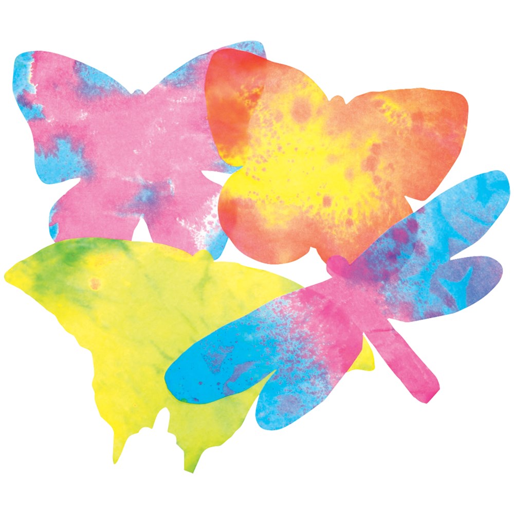 Colour Diffusing Insect Shapes that come plain for you to create. Pack of 48 shapes in 4 assorted designs. Each shape measures approximately 32 x 19cm. 57gsm.