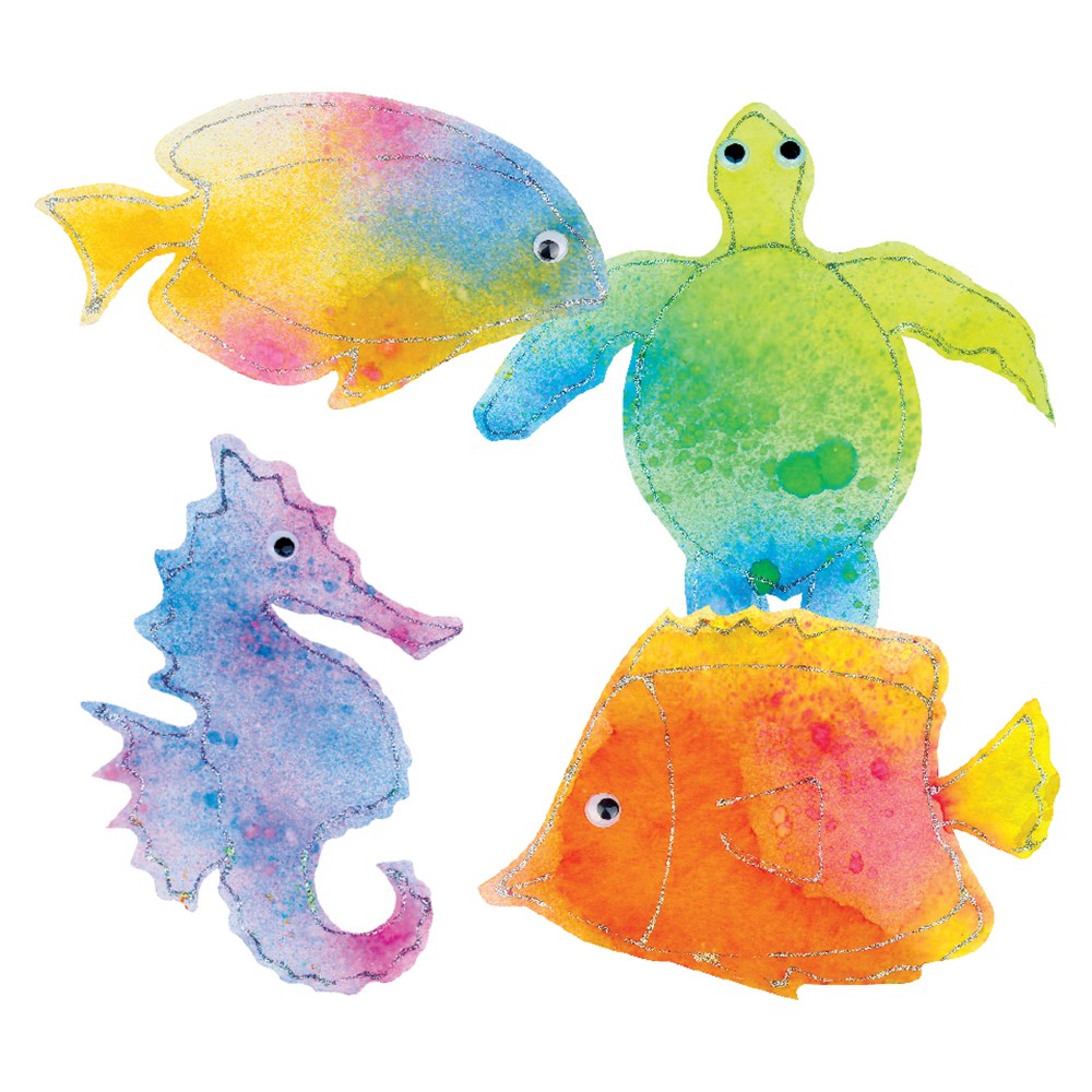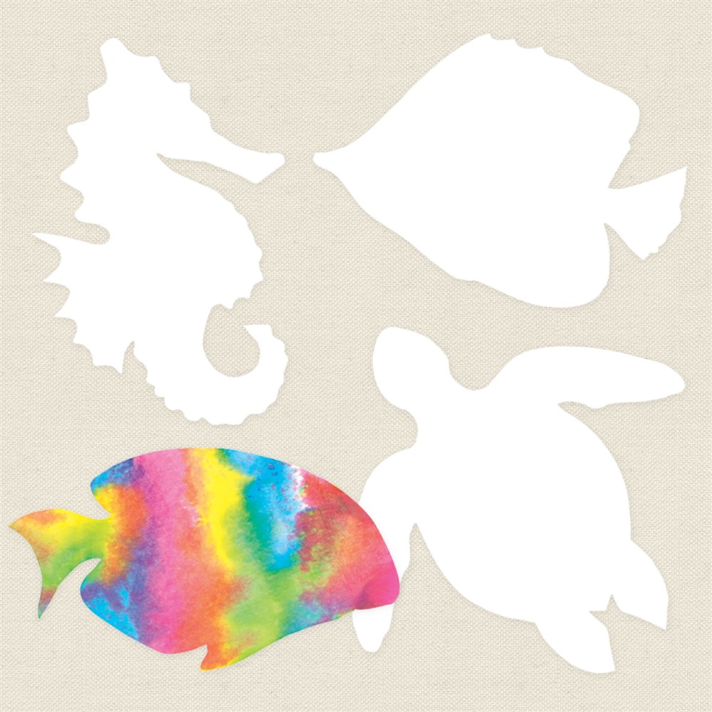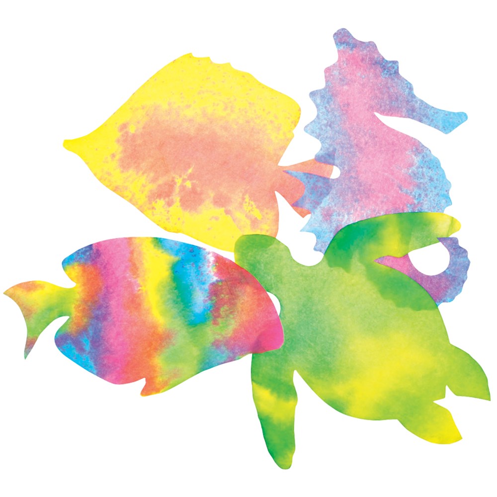 Colour Diffusing Sealife Shapes that come plain for you to create. Pack of 48 shapes in assorted designs. Each shape measures approximately 27 x 16cm. 57gsm.