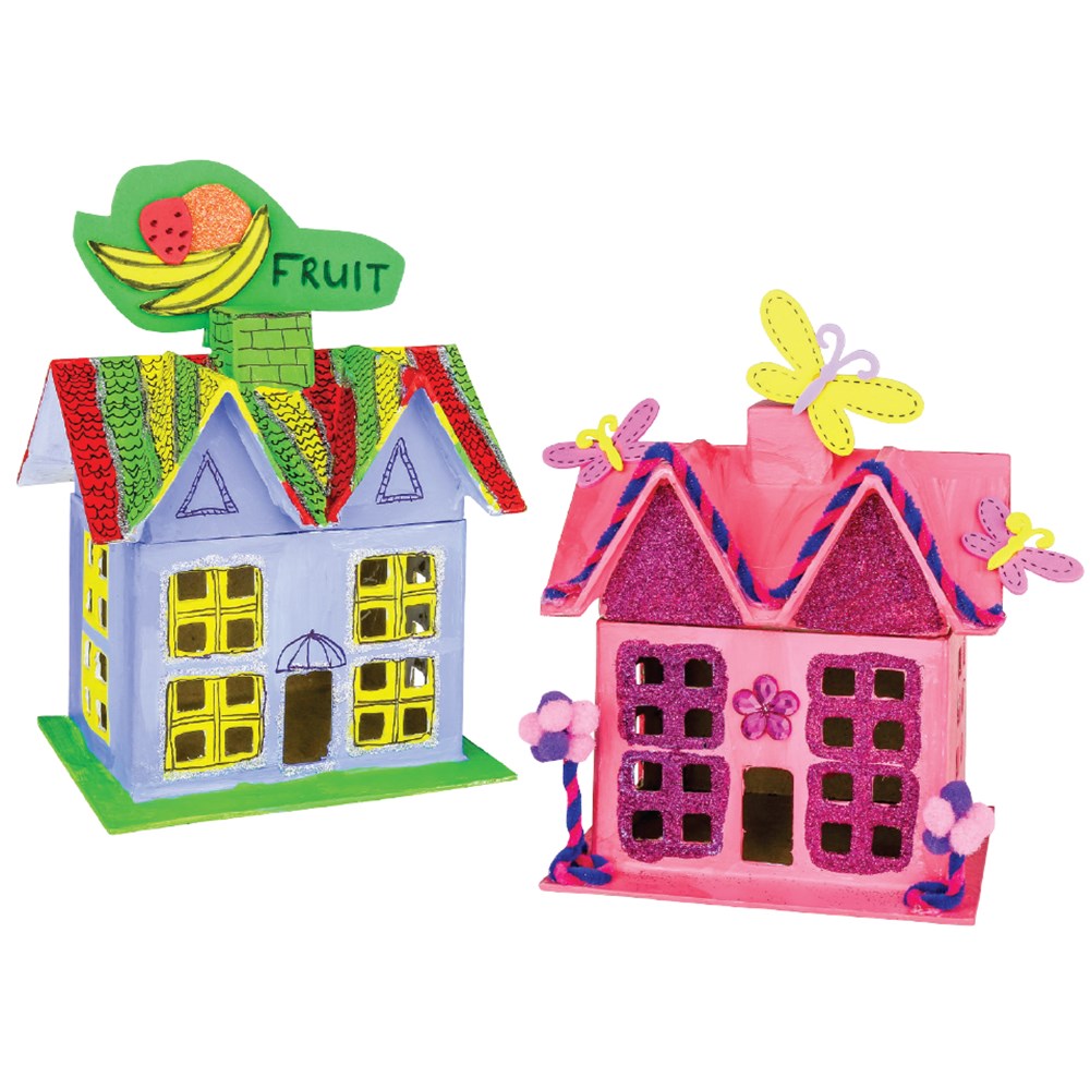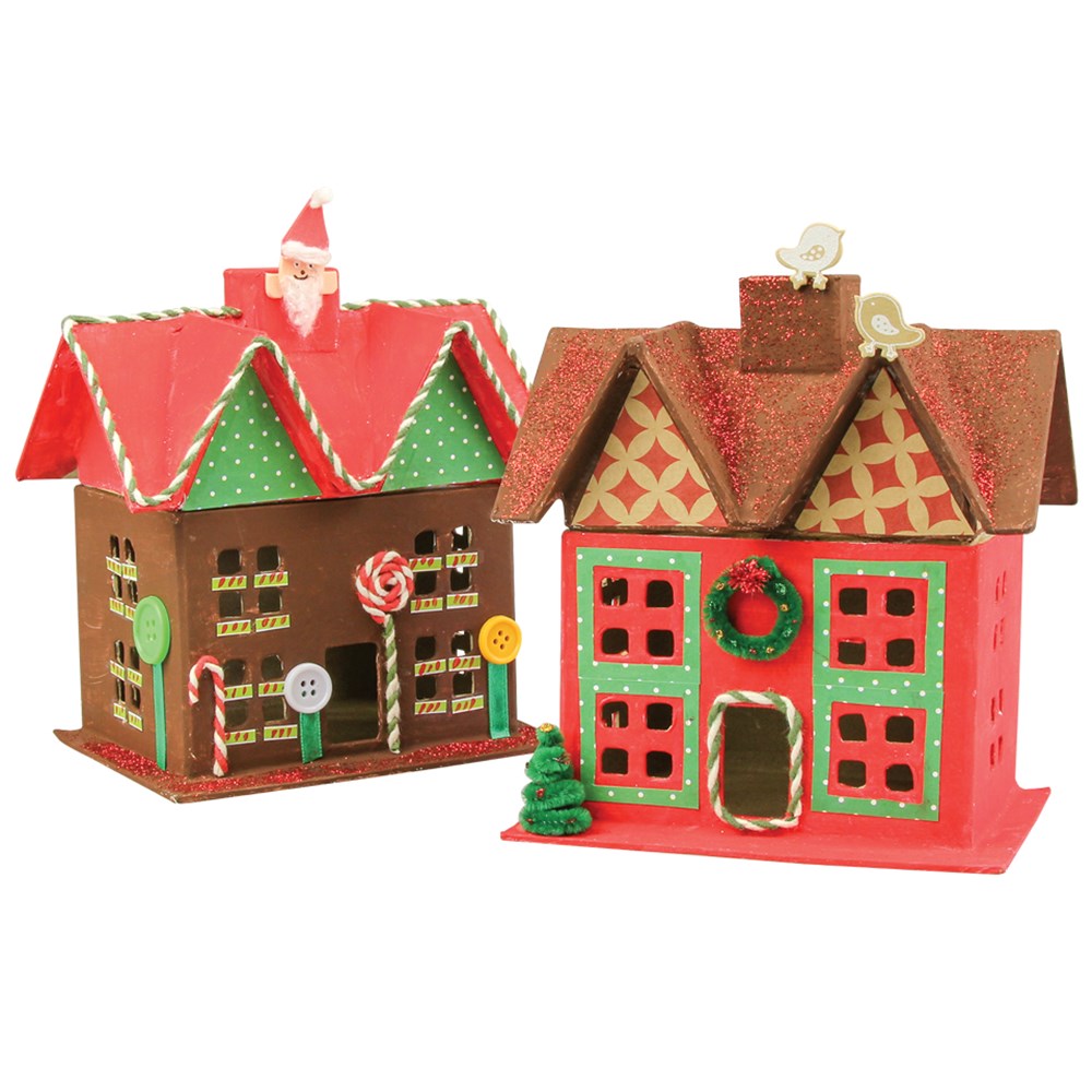 Handmade papier mache house with removeable roof.