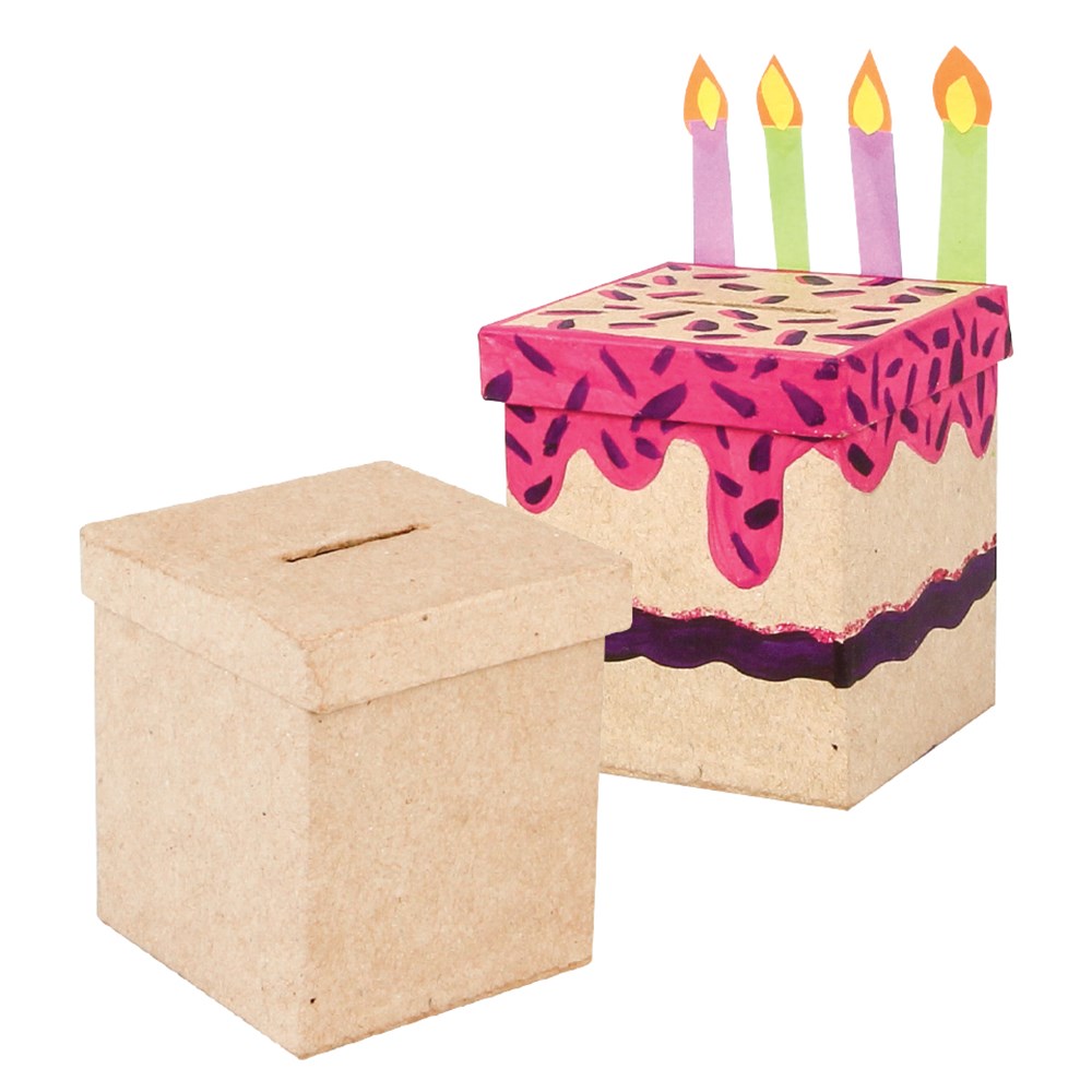 Handmade papier mache money box.