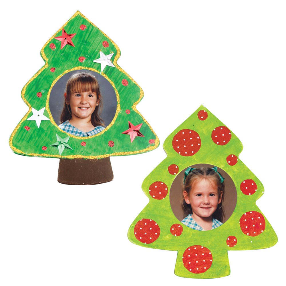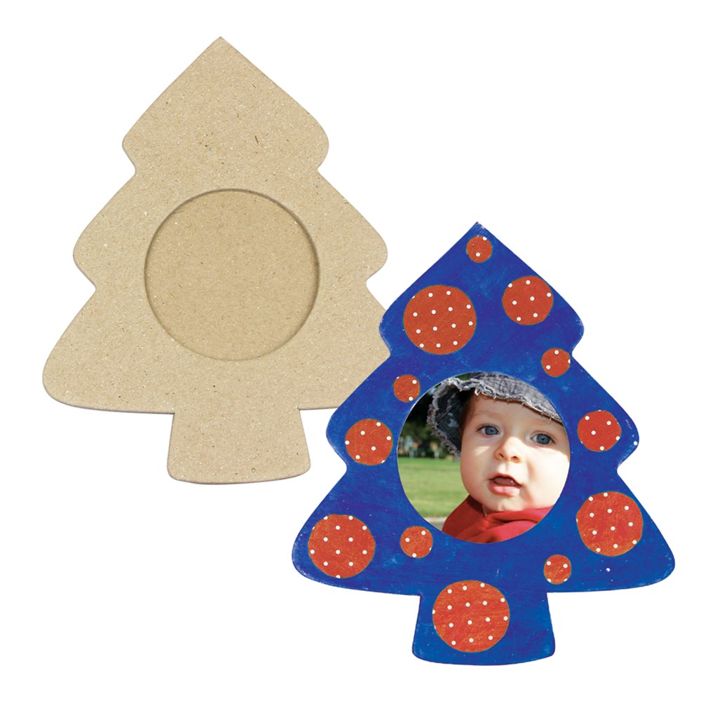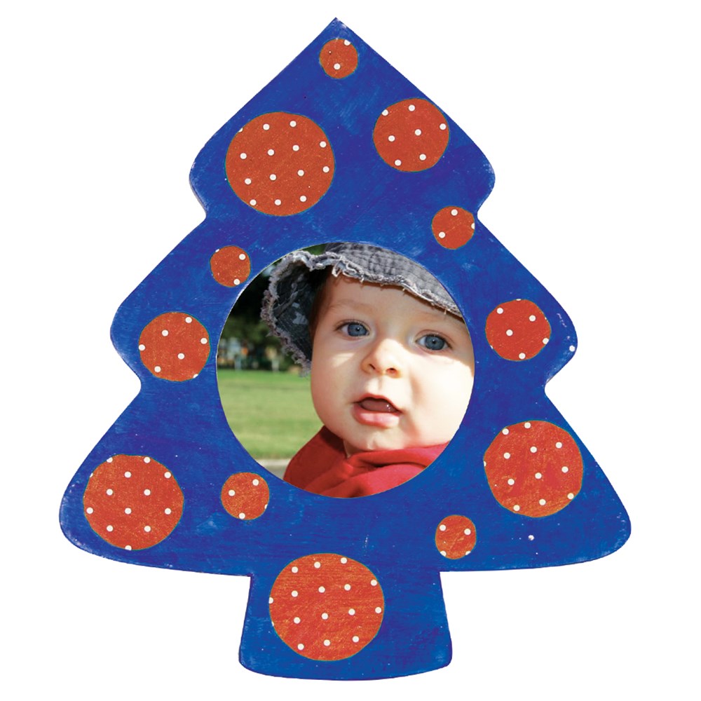 Handmade papier mache Christmas tree photo frame. Plain for you to create. Stand included. Frame measures 12.5 x 15cm. Space for photo measures 5.5cm in diameter.