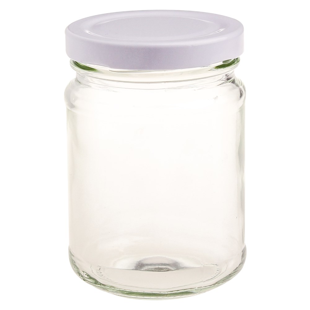 Clear plain glass jar with metal lid. Ideal for sand art, storing small collage materials, paint and much more!