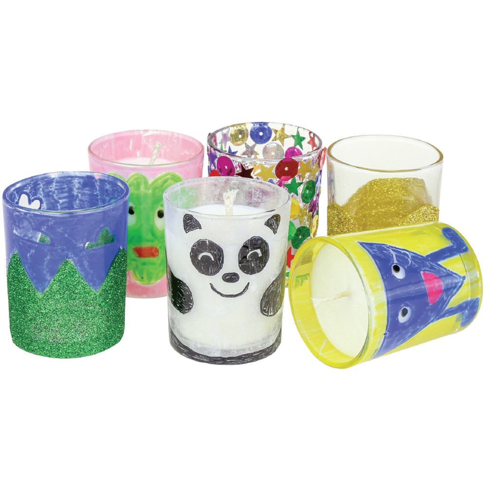 Clear glass tealight holders supplied plain for you to create. Decorate with our high quality CleverPatch Glass and Porcelain Markers. Each tealight holder measures 4.5 x 6cm.