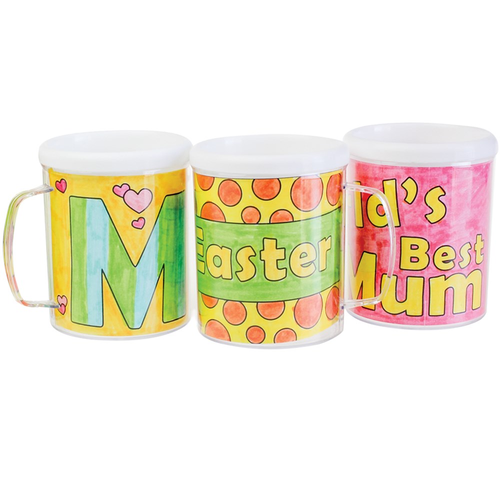 Mugs include plain inserts for you to decorate. Hand wash only. Each mug measures 10 x 8.5cm. Additional FREE downloadable inserts available below.