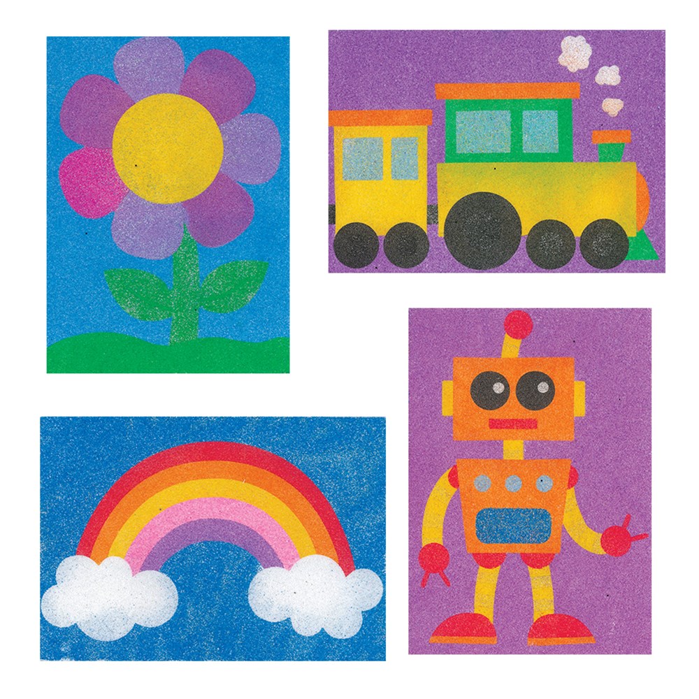 Create beautiful sand art masterpieces with these creative sheets! 4 assorted pre-printed designs on 250gsm adhesive board. A5 size. Sand not included.