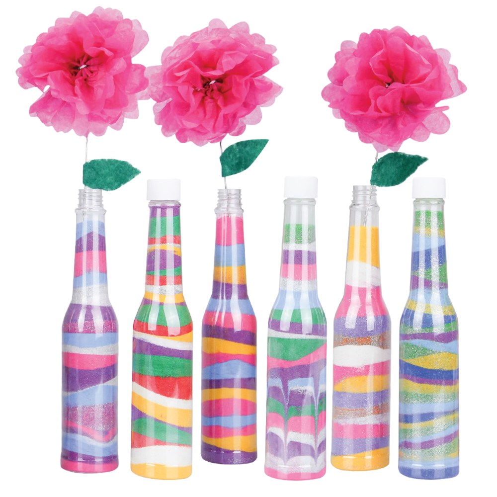 Plastic bottles ideal for creating sand art with CleverPatch Coloured Sand and CleverPatch Glitter Sand (not included). For easy filling try using our craft funnels . Each bottle has a removable cap and measures 18 x 4cm. Holds approximately 200g.