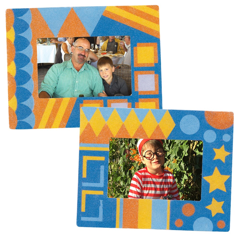 Create beautiful sand art masterpieces with these photo frame sheets! 4 assorted pre-printed designs on 250gsm adhesive board. Each frame measures 18 x 23cm. Space for photo measures 9 x 14cm. Sand and Foil Art Sheets sold separately.