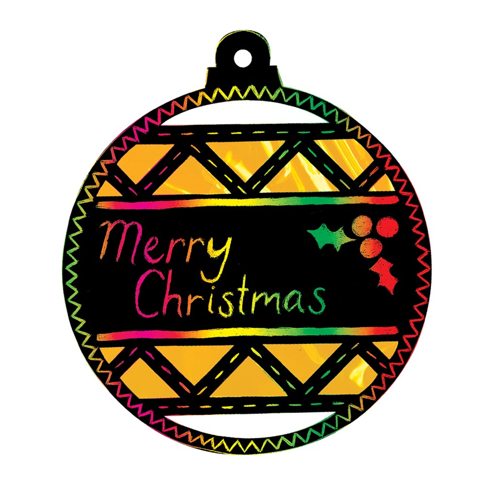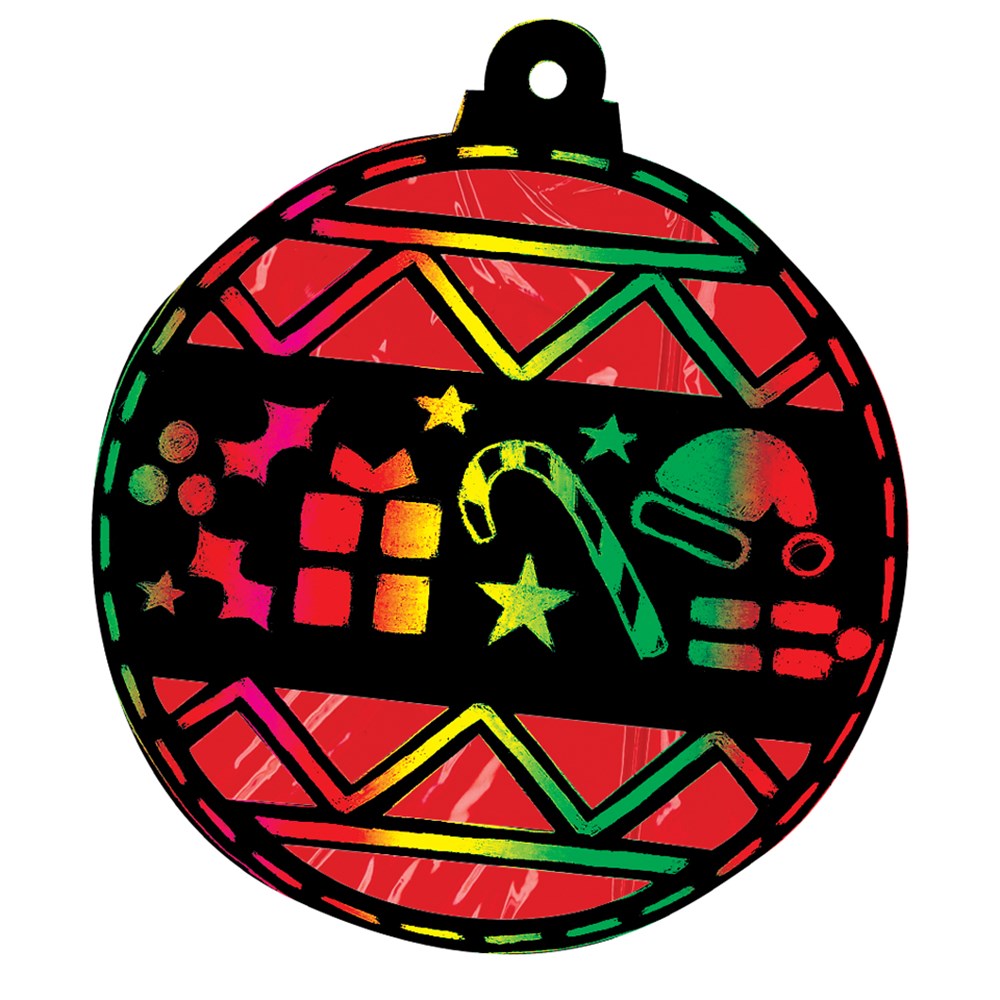 Scratch directly onto the board surface and your drawings will appear in multicolour! So easy and lots of fun. Experiment with different designs and patterns. Plain for you to create. Includes a hole for hanging. Each cutout bauble measures 20 x 23cm. 250gsm board. Scratch Board Tools sold separately.