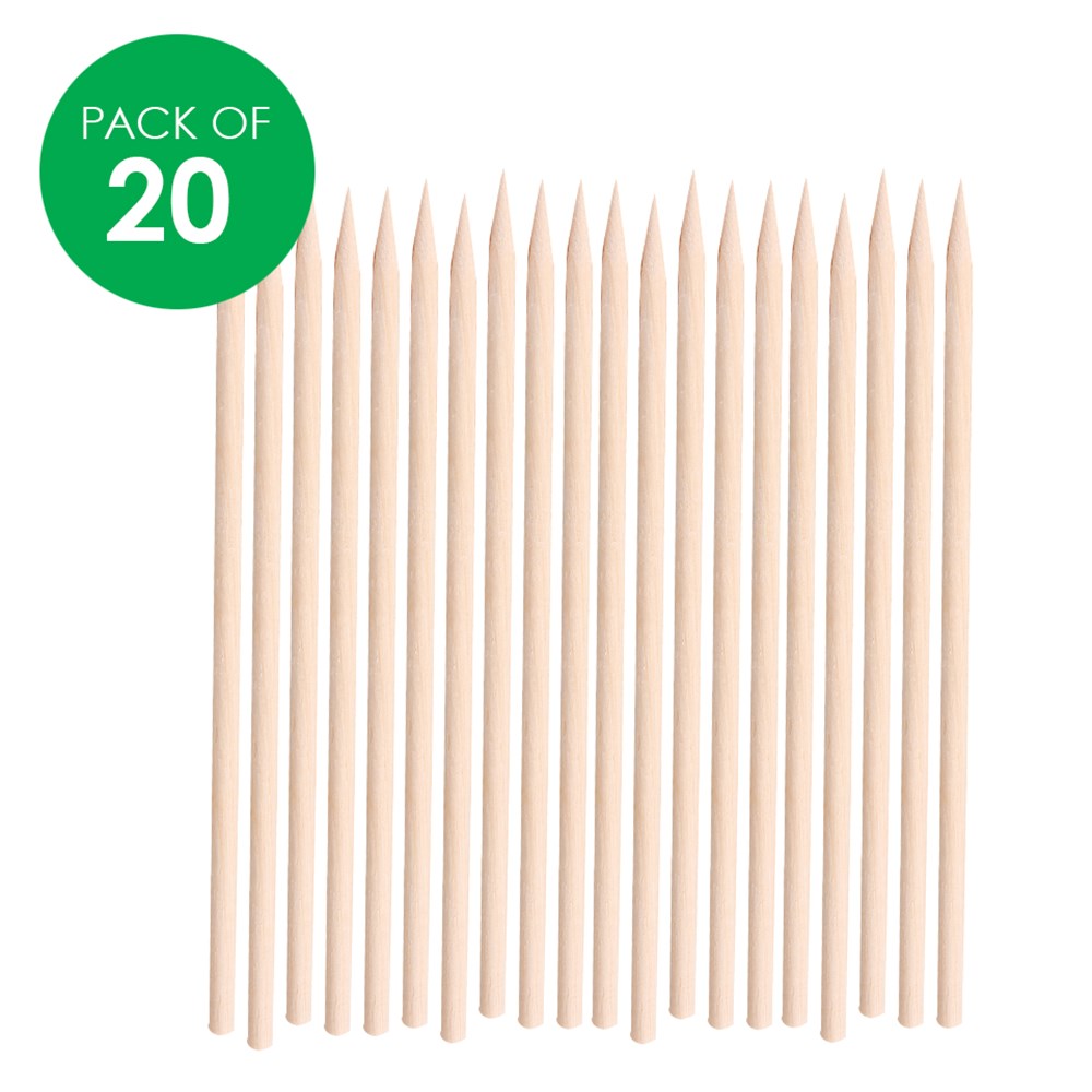 Pack includes 20 wooden tools for use with our Scratch Board range. Each tool measures 14cm long. Design may vary.