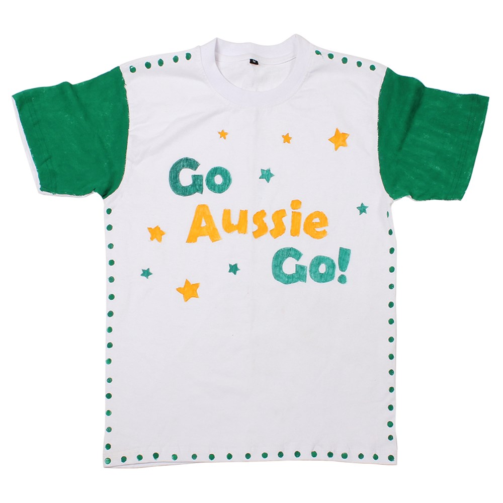Plain for you to create. Children's size 12. 42cm across chest and 58cm in length from shoulder to hem. 100% cotton.