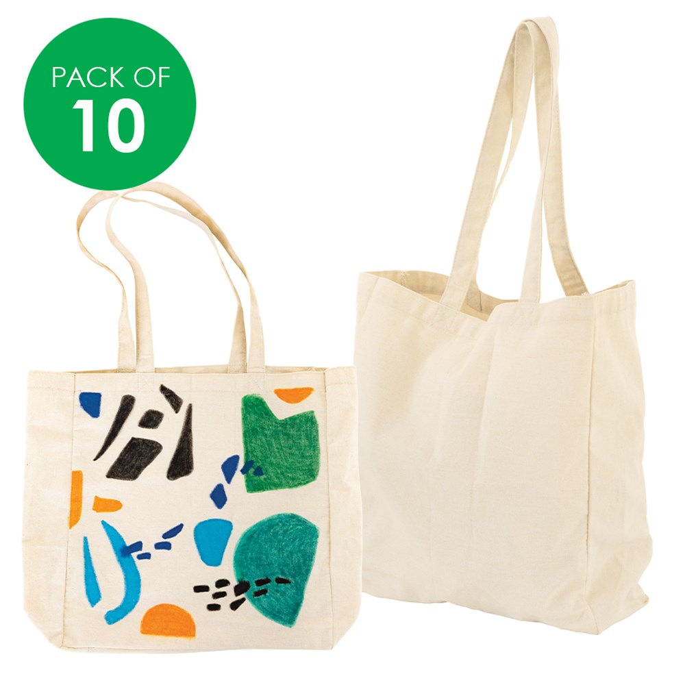 Plain for you to create. Decorate with our CleverPatch Fabric Markers, Tie Dye or Fabric Paint (sold separately). Each bag measures 35 x 13cm.
