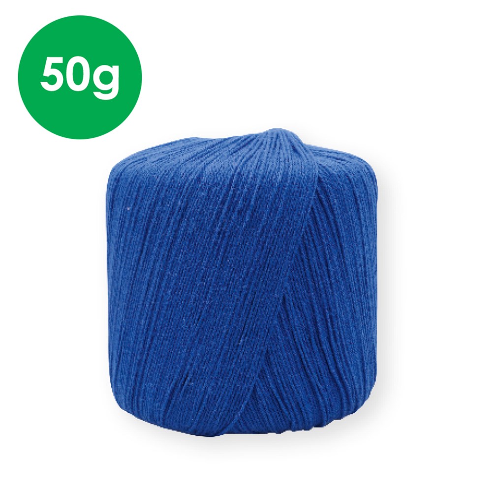 Blue crochet cotton. 100% cotton. 3 ply. Measures approximately 225m long. Colour and length may vary.