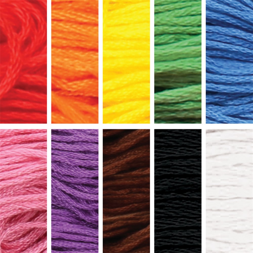 Set of 10 includes 48 metres of each colour (red, orange, yellow, green, blue, pink, purple, brown, black, white). Each colour contains 6 bundles of 8 metres. Colours may vary.