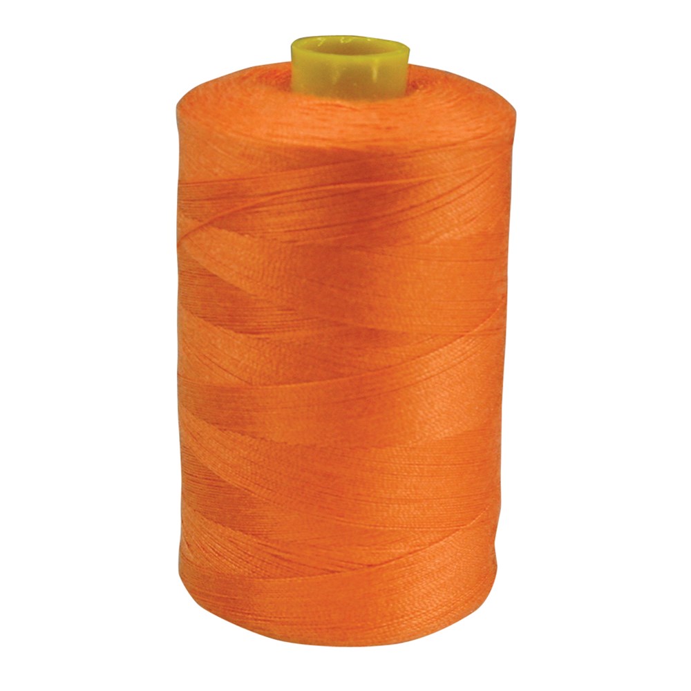 100% spun polyester orange sewing thread. 1,000m per roll.
