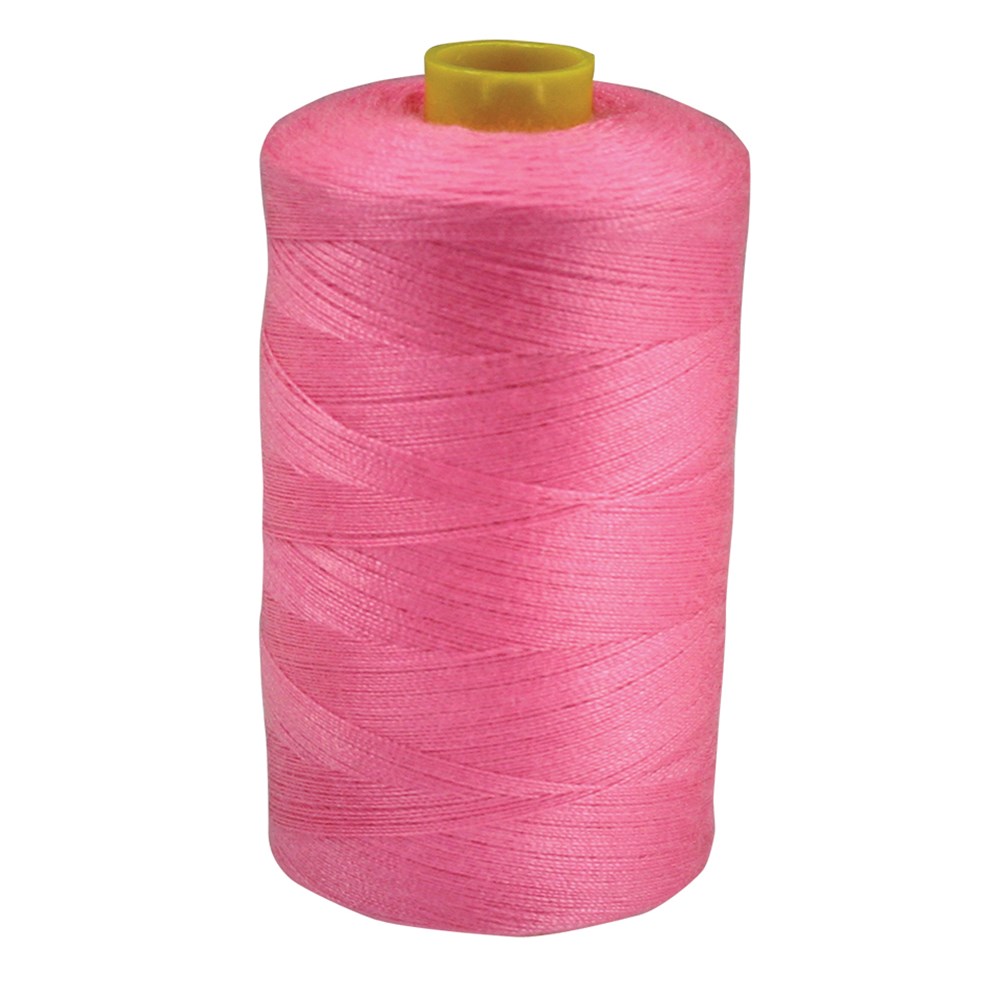 100% spun polyester pink sewing thread. 1,000m per roll.