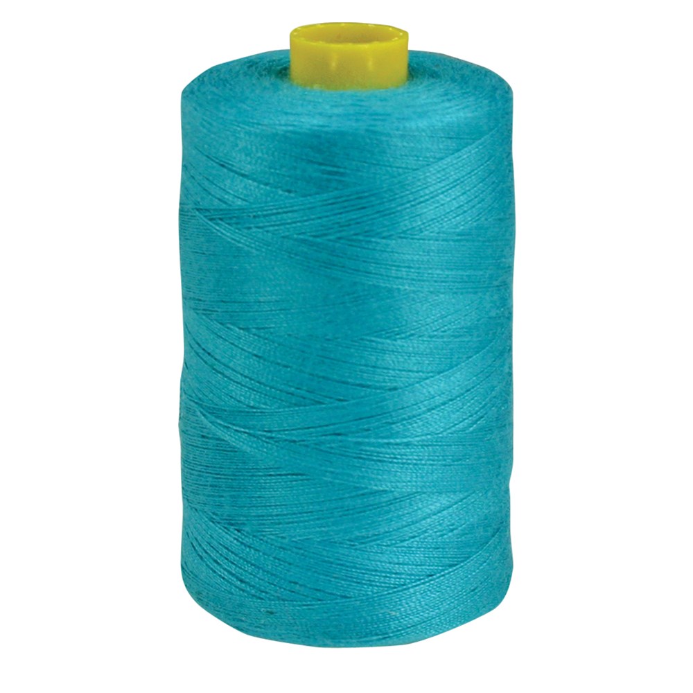 100% spun polyester turquoise sewing thread. 1,000m per roll.