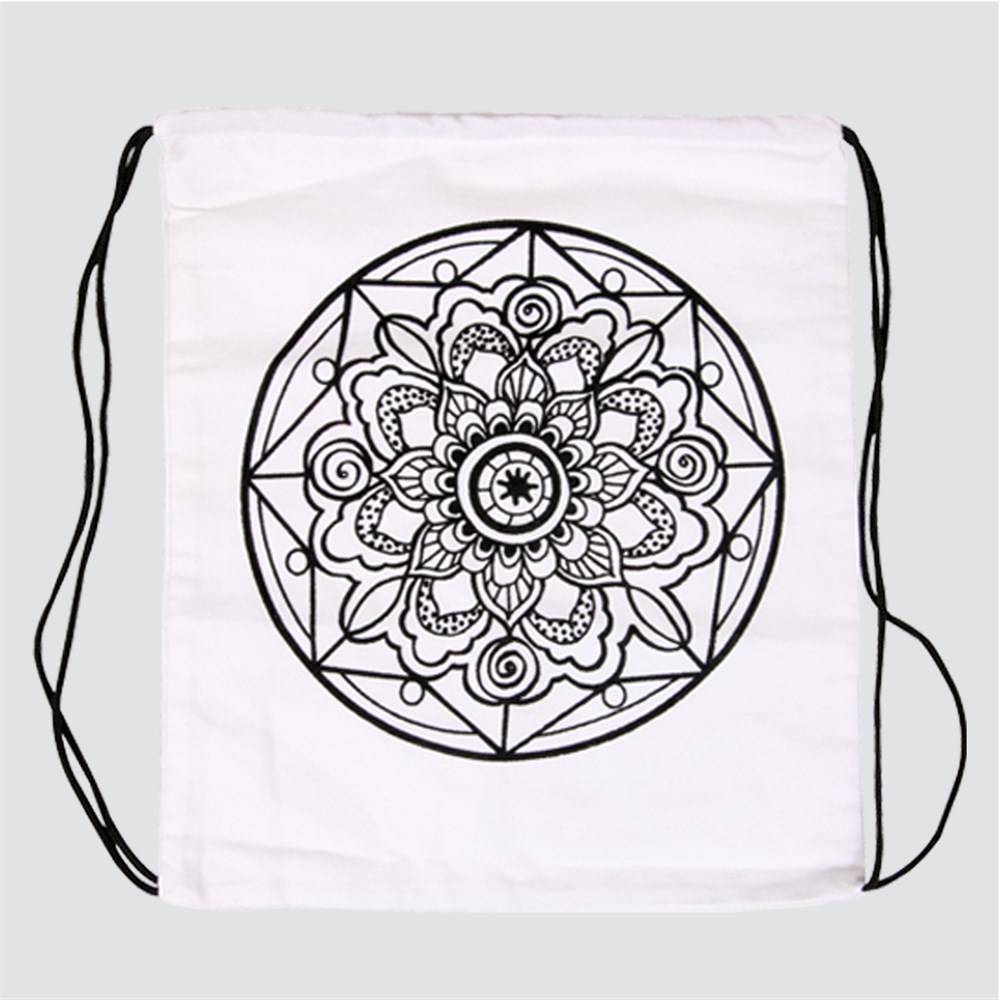 Colour your mandala design to create your own vibrant drawstring bag! Cotton bag with black velvet flocking. Plain for you to create. Decorate with our CleverPatch Fabric Markers or Fabric Paint. Iron on the reverse side of the bag once completed to heat set your design. Measures 29 x 33cm.