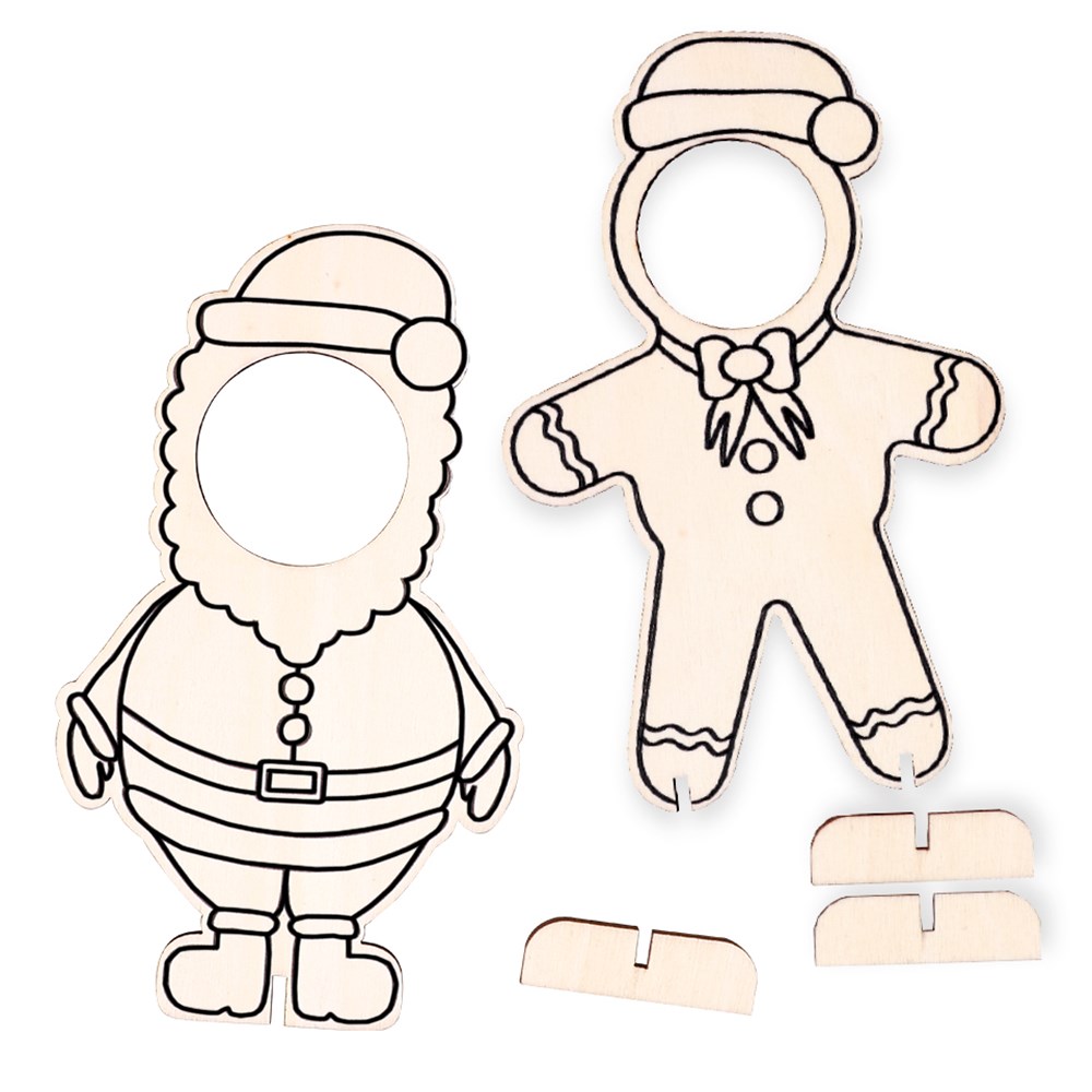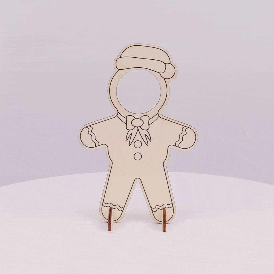Each pack contains 2 assorted pre-printed designs. Frame are supplied flat-packed for easy self-assembly and plain for you to create. Gingerbread frame measures approximately 10.5 x 4.5 x 16cm when assembled. Space for photo measures approximately 4cm in diameter. Made from 2mm plywood.