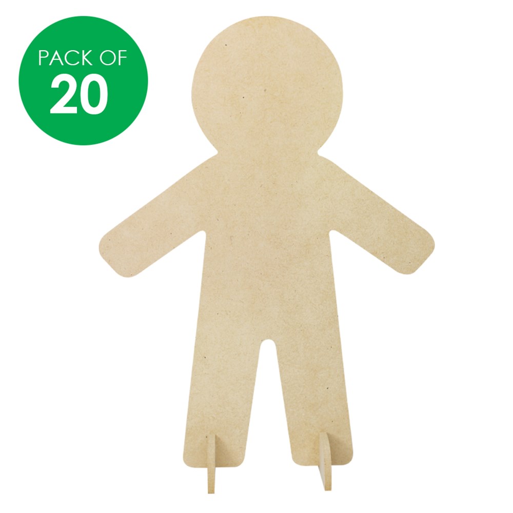 Australian made wooden 3D people. Supplied flat-packed for easy self-assembly and plain for you to create. Each person measures 14.5 x 5.5 x 20cm when assembled. 3mm wood.