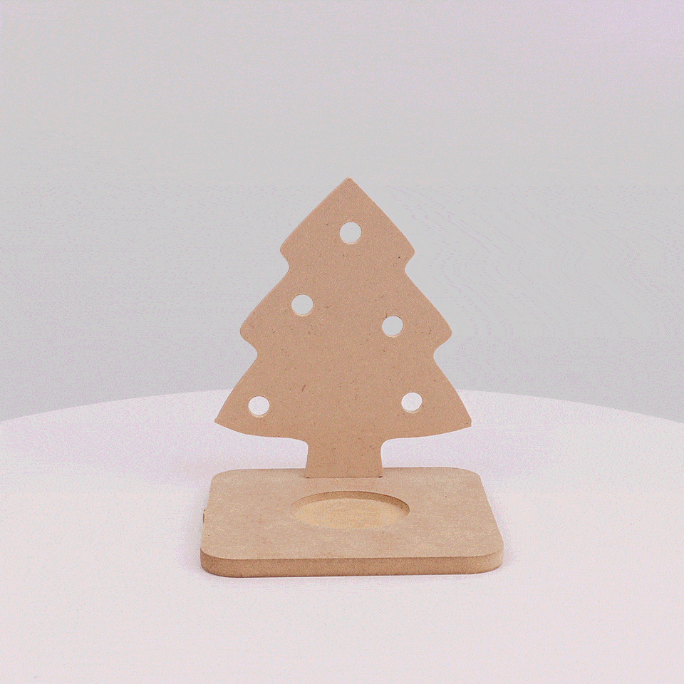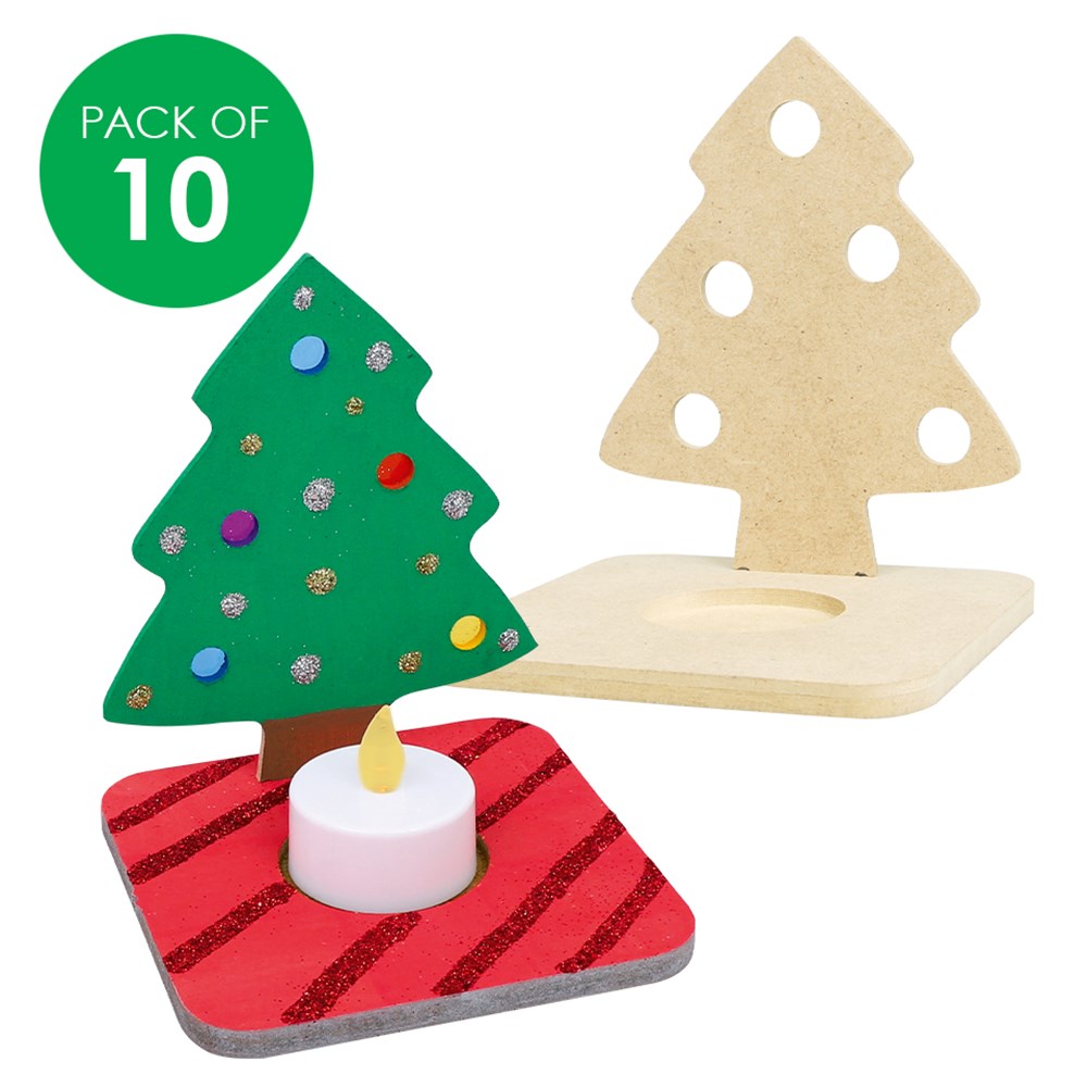 Australian made wooden Christmas tree tealight candle holders. Supplied flat-packed for easy self-assembly and plain for you to create. Each candle holder measures 10.1 x 10.1 x 12.3cm when assembled. 6mm wooden base and 3mm wooden tree shape. LED tealight candles sold separately. Adult supervision recommended when burning candles.