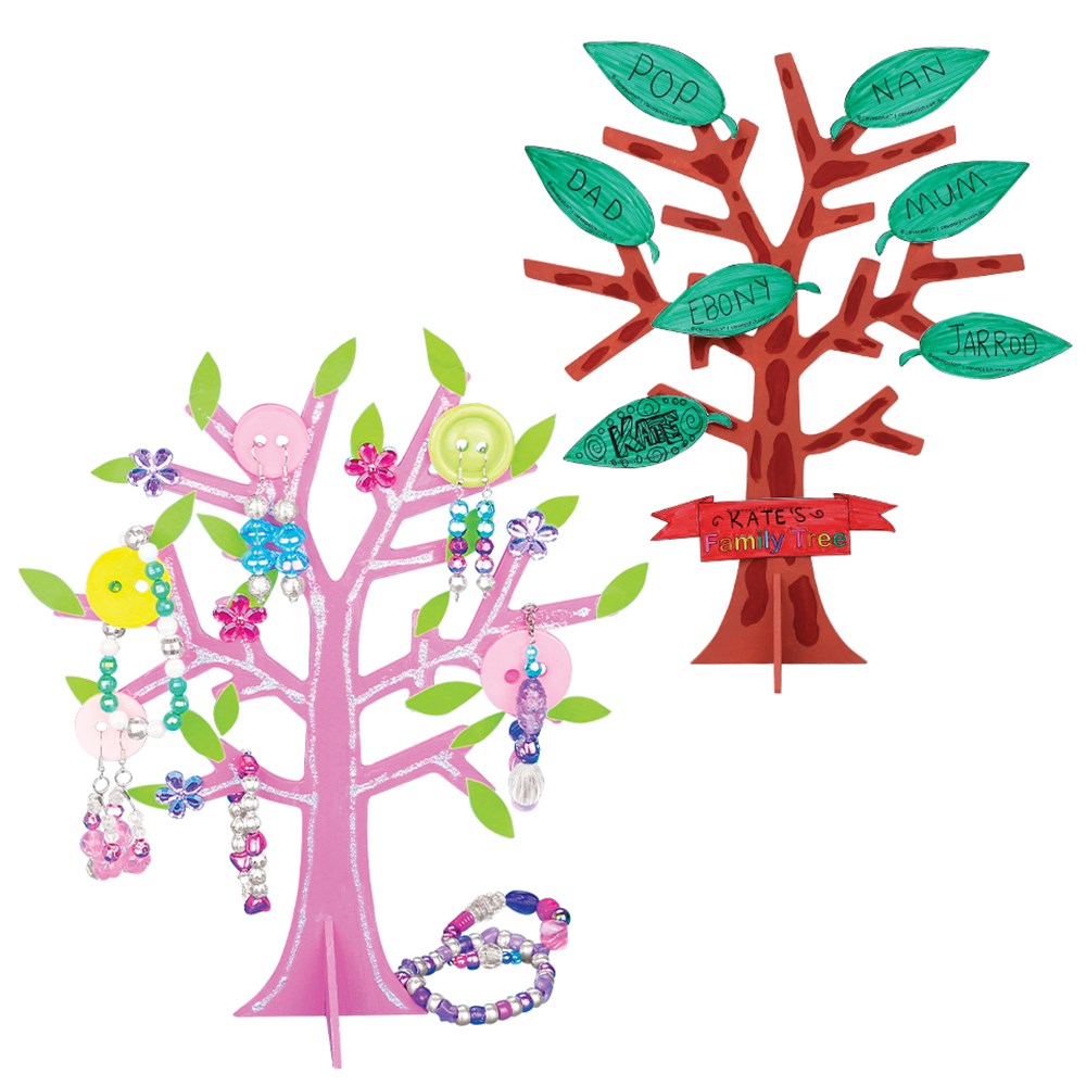 Perfect to use as a Jewellery Tree to store all of your special trinkets, or why not create your Family Tree! Australian made 3D wooden trees. Supplied flat-packed for easy self-assembly and plain for you to create. Each tree measures 23 x 9 x 28cm. 3mm wood.